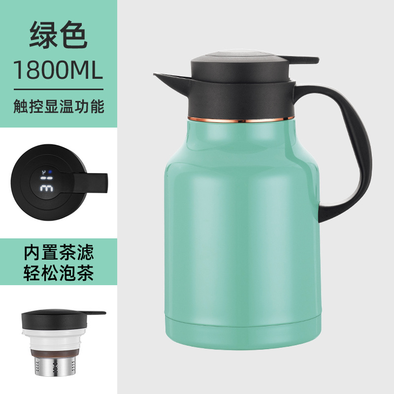 Зеленая модель с интеллектуальным дисплеем температуры объемом 1,8 л (с чайным фильтром | сохранение тепла в течение 36 часов)