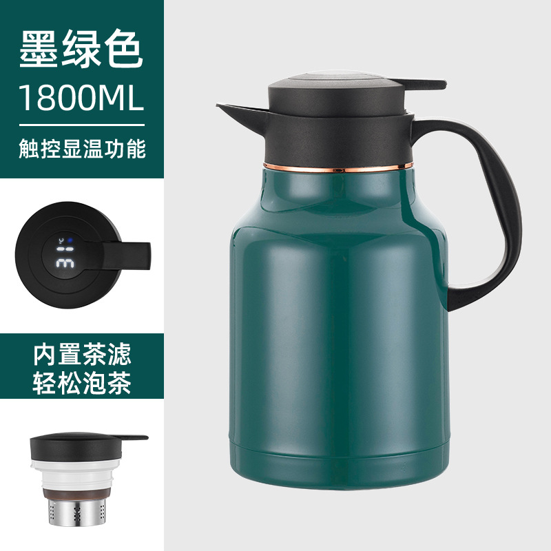 Темно-зеленая модель с интеллектуальным дисплеем температуры объемом 1,8 л (с чайным фильтром | сохранение тепла в течение 36 часов)