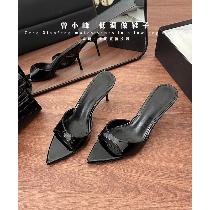Главная страница > 2025 новых открытых остроносых лакированных босоножек-шлепанцев на шпильке для женщин, летние сексуальные черные босоножки на высоком каблуке для улицы.
