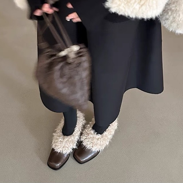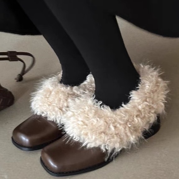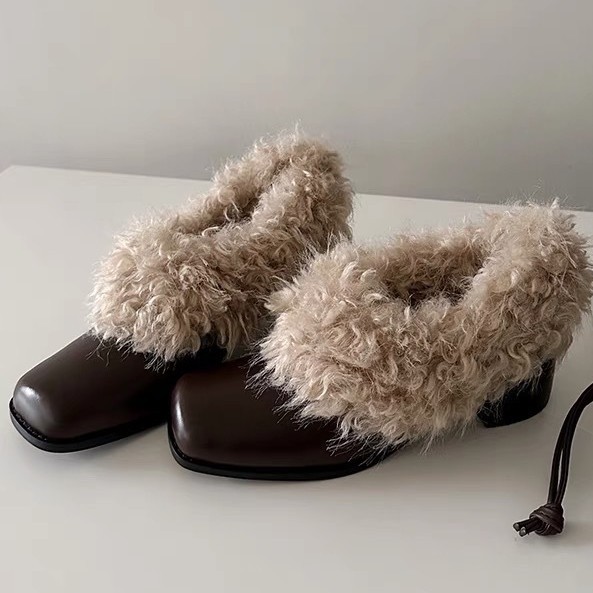 Главная страница > Коровья кожа версия ~ Квадратный педаль ретро плюс бархат теплая маленькая кожаная обувь Мэри Джейн хлопковая обувь толстая обувь на каблуке меховая обувь