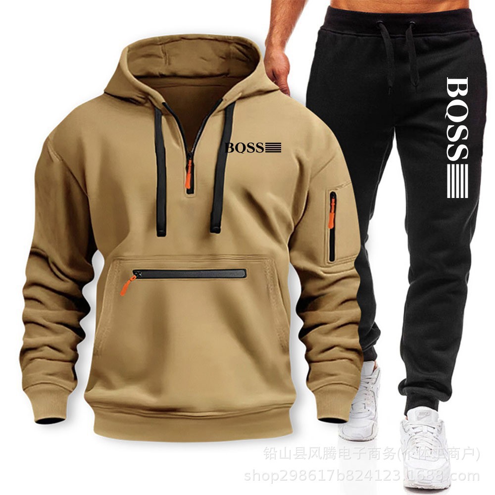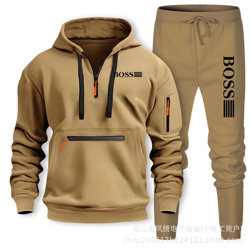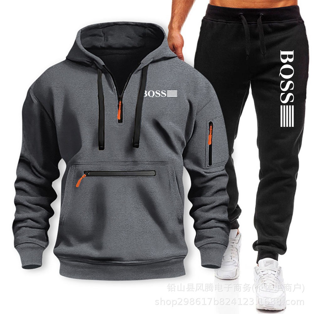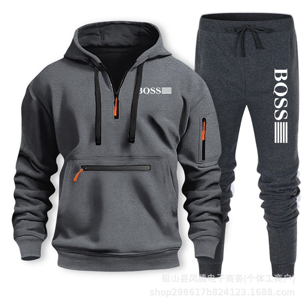 Главная страница > Трансграничный осенний и зимний толстовка с капюшоном с принтом мужской свитер с горизонтальной застежкой-молнией с несколькими карманами спортивный набор 2025