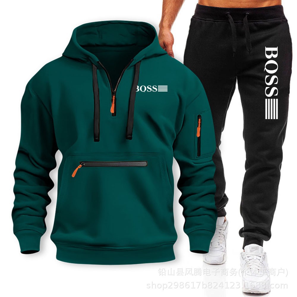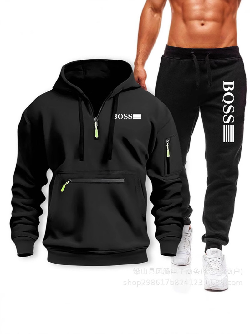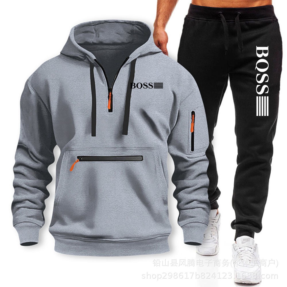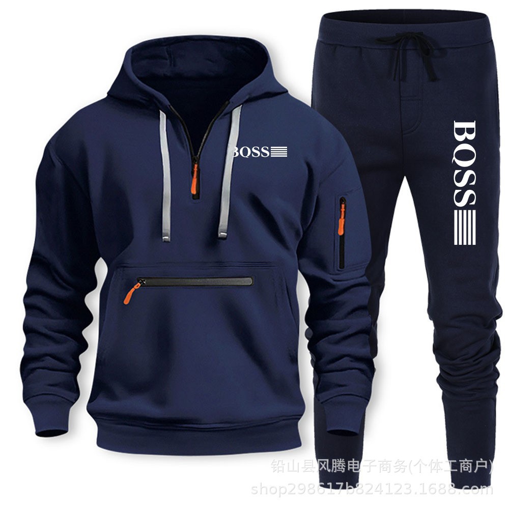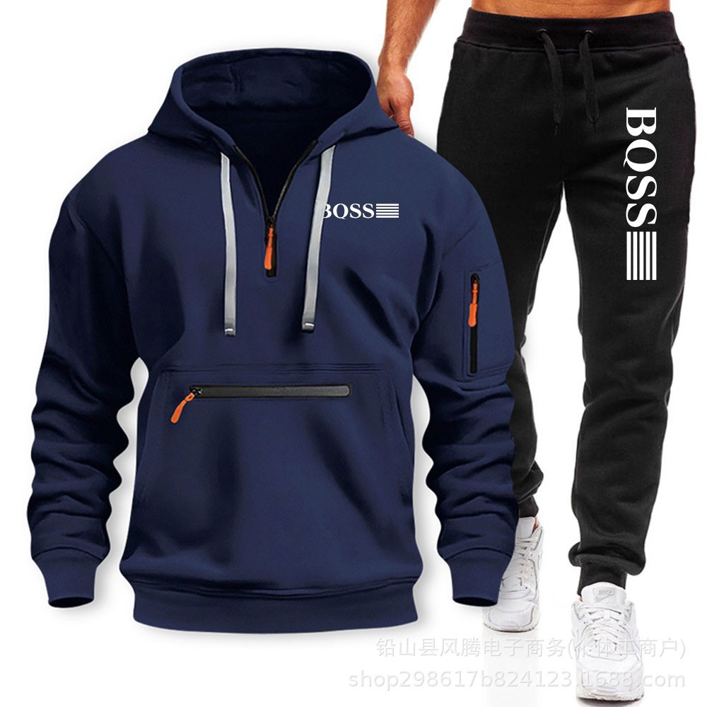 Главная страница > Трансграничный осенний и зимний толстовка с капюшоном с принтом мужской свитер с горизонтальной застежкой-молнией с несколькими карманами спортивный набор 2025