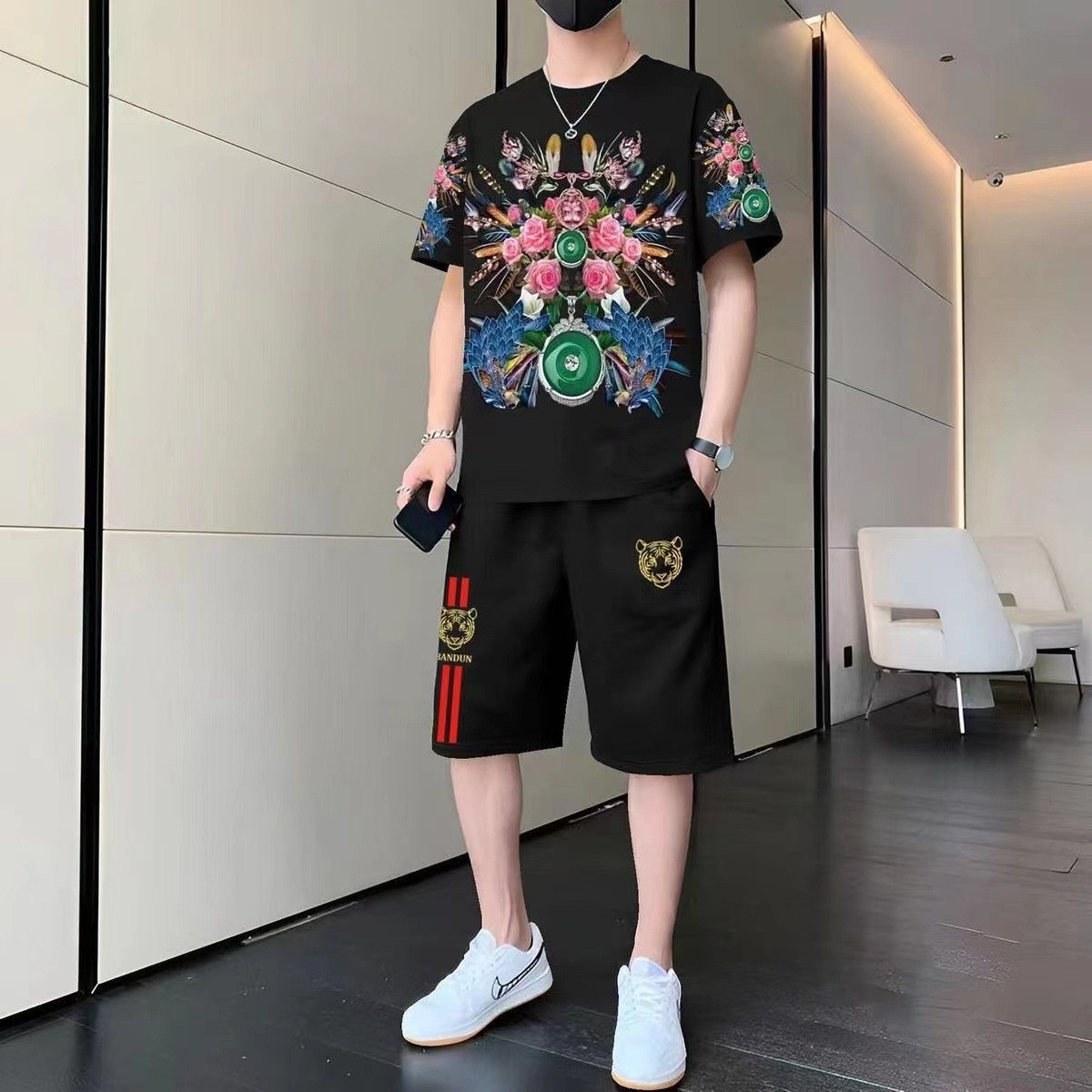 Главная страница > Спортивный набор для отдыха Мужские футболки с короткими рукавами и шорты Пляжная одежда Тенденция Молодежный китайский дракон узор из двух частей летом