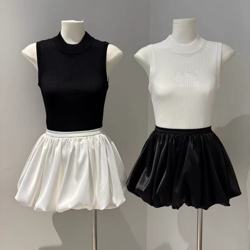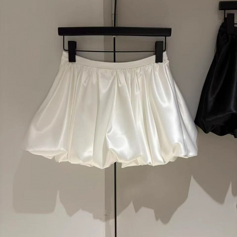 Главная страница > 白色法式赫本风缎面半身裙高腰蓬蓬裙亮面复古防走光短裙花苞裙子