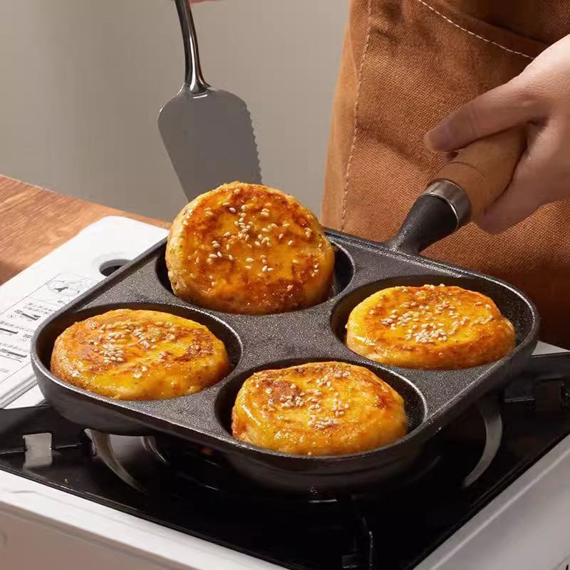 Главная страница > Чугунная сковорода для омлета с четырьмя отверстиями, сковорода для яичного бургера, артефакт для омлета без покрытия, сковорода для яичных пельменей, сковорода с антипригарным покрытием