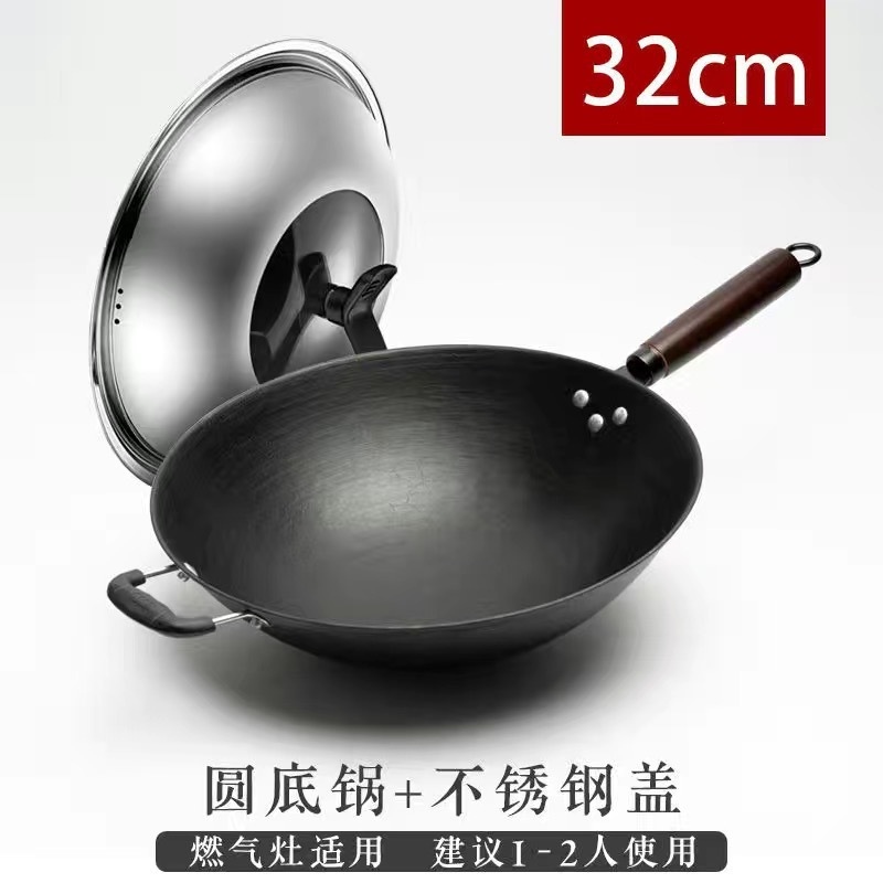 Плоское дно 32 см + крышка из нержавеющей стали.