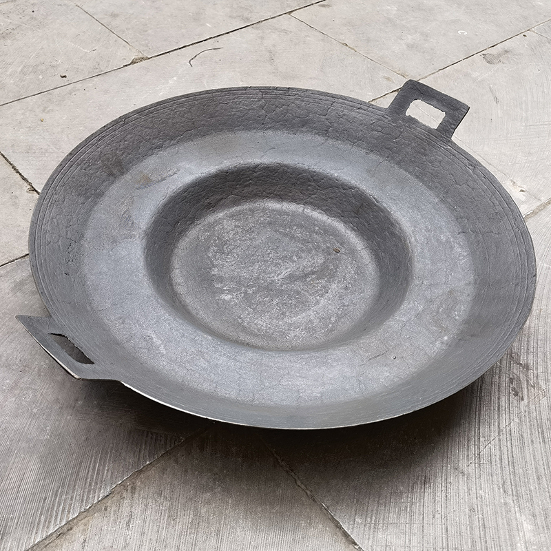 Маленький диаметр 36 см, около 1.5kg очень толстых чугуна с плоским дном.