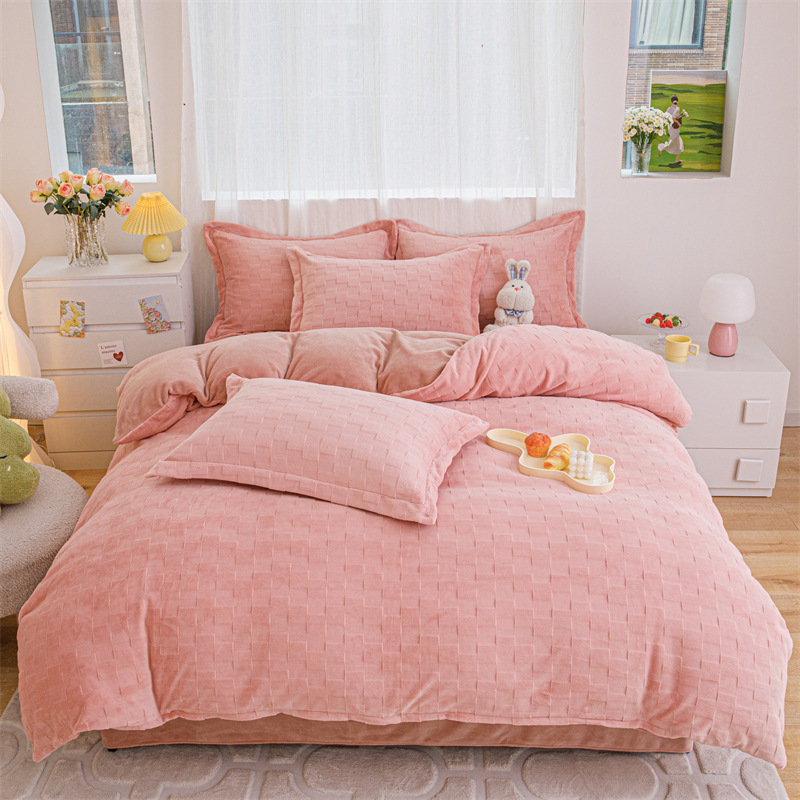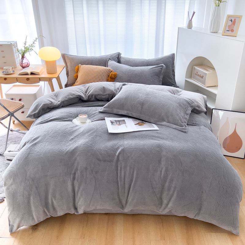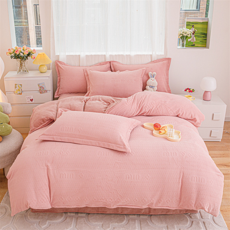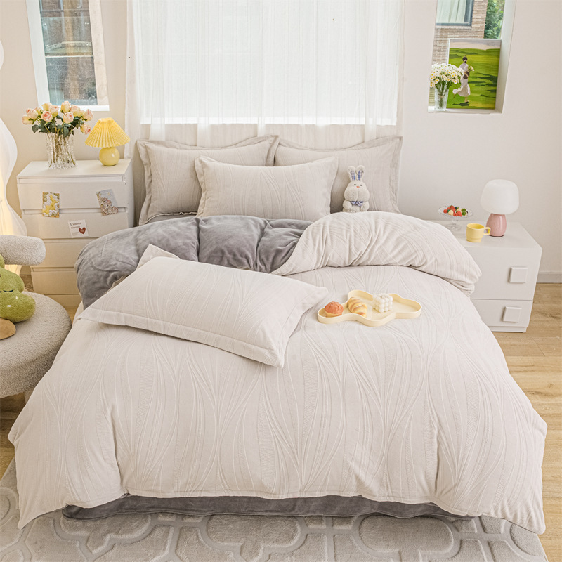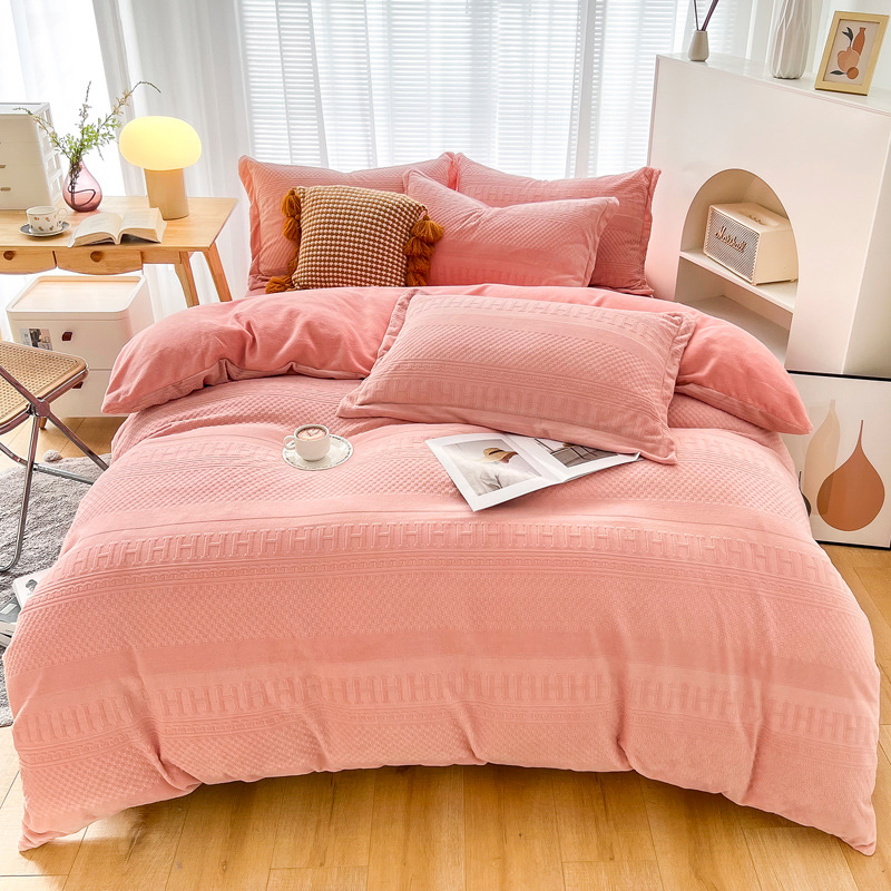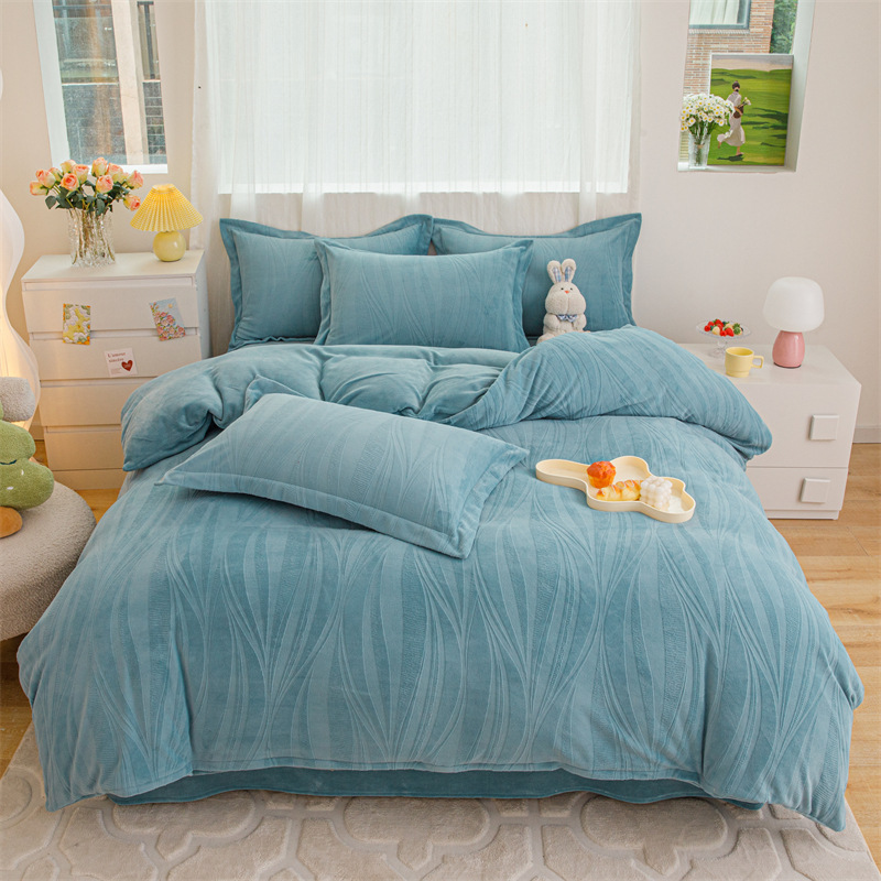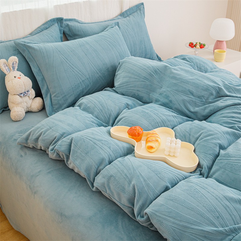 2024 новый молочный бархат жаккардовый набор из четырех частей одеяло простыни фланелевый толстый зимний теплое постельное белье