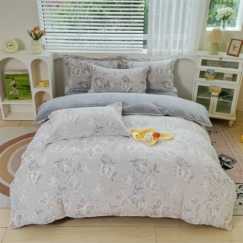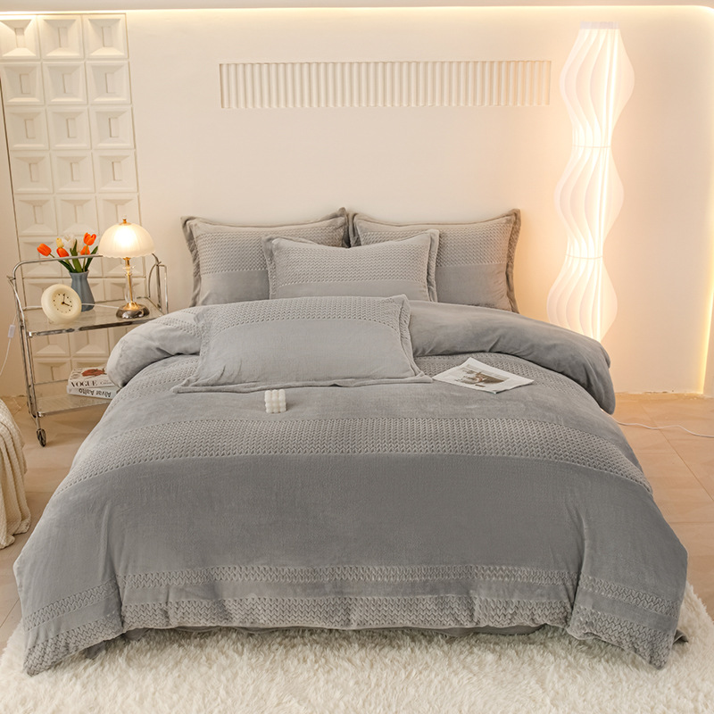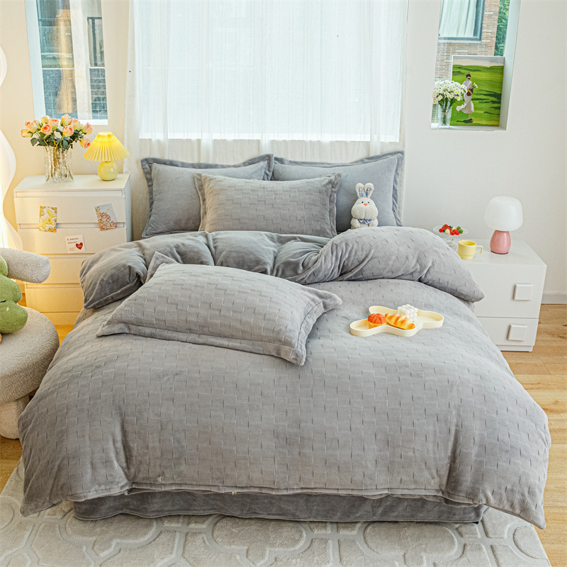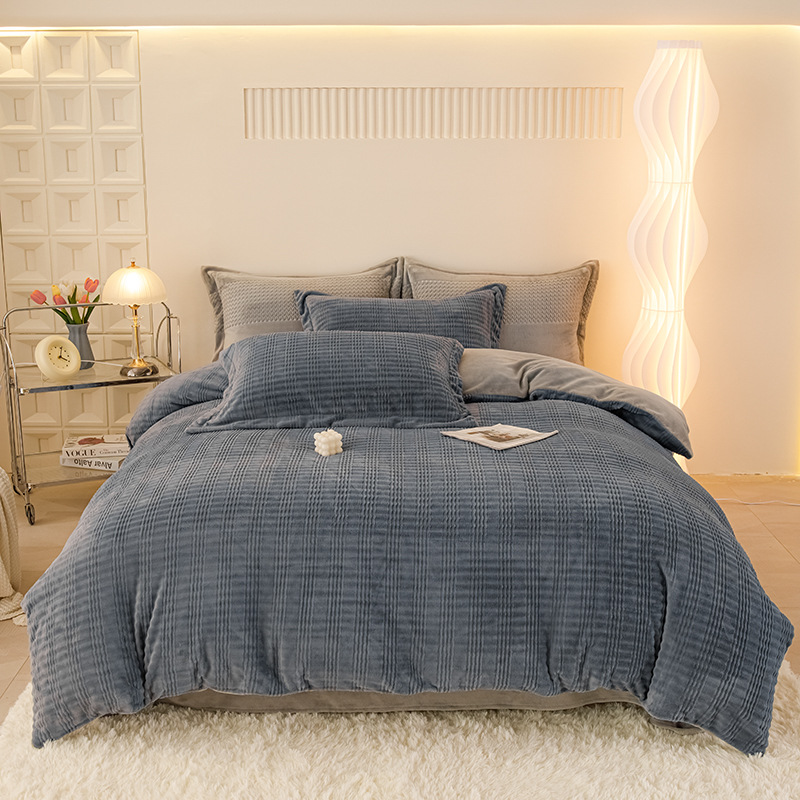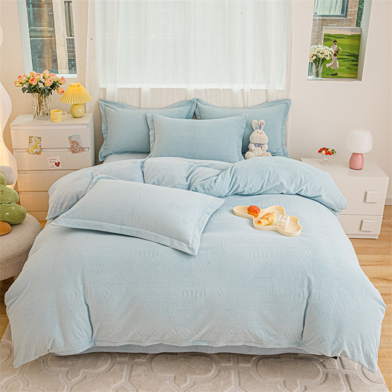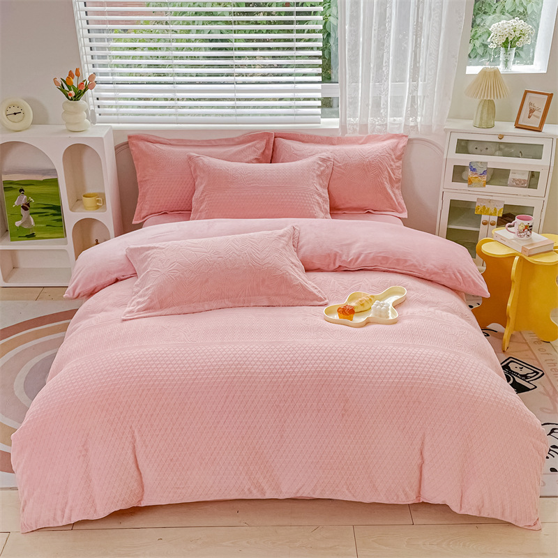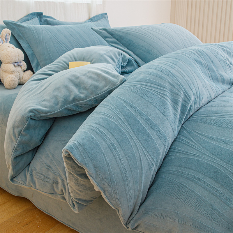 2024 новый молочный бархат жаккардовый набор из четырех частей одеяло простыни фланелевый толстый зимний теплое постельное белье