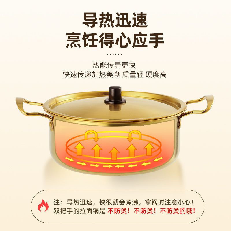 Индукционная плита из нержавеющей стали, модная кастрюля для горячего горшка, кастрюля для лапши в общежитии, золотая кастрюля для супа, корейский японский стиль, лапша быстрого приготовления с двумя ручками, домашний рамен