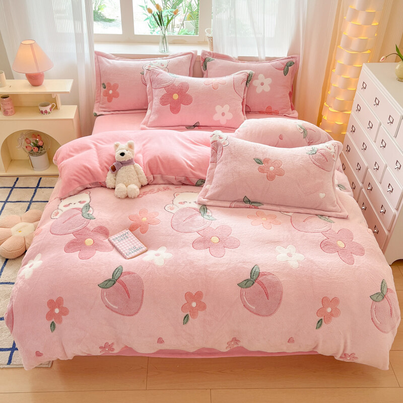 Главная страница > Комплект постельного белья из четырех предметов: зимний флис, велюр «снежинка», одинарный пододеяльник из молочного велюра, двусторонний флис из кораллового велюра, простыня