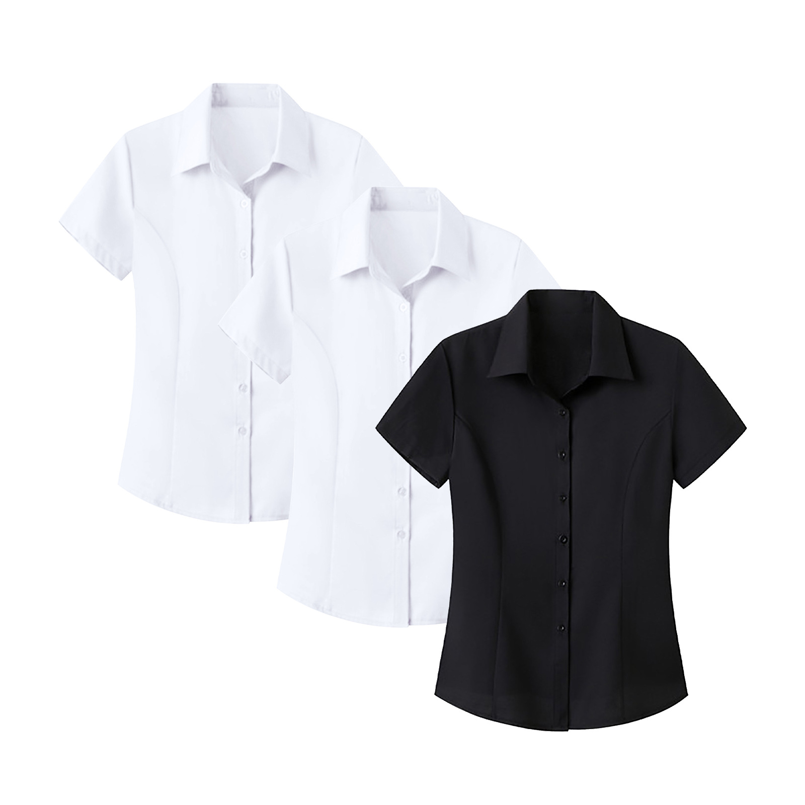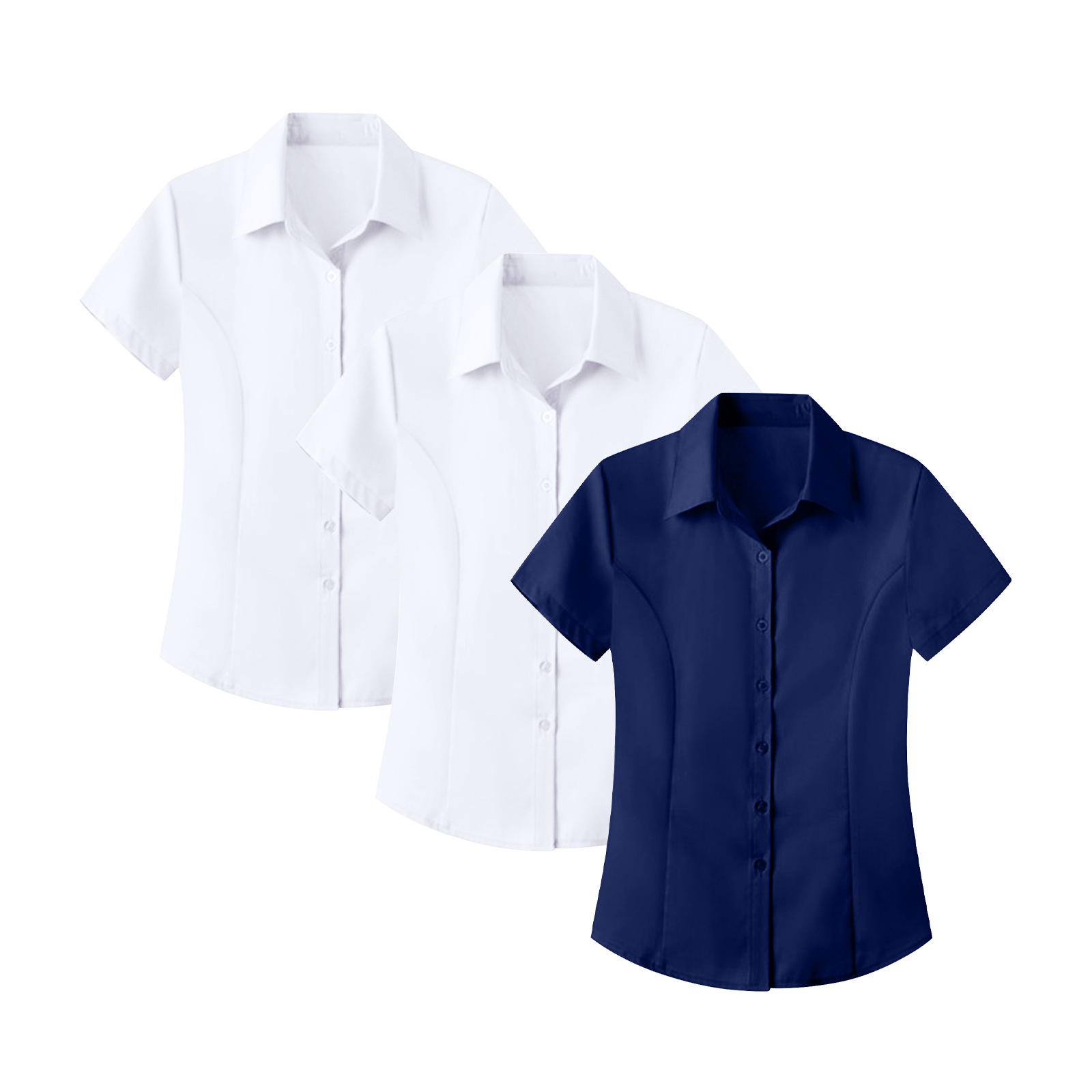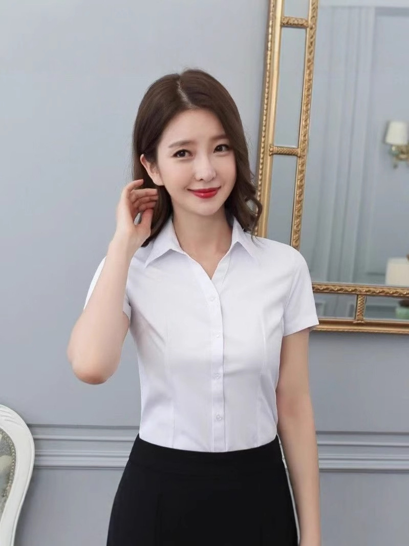 Главная страница > Новая высококачественная женская деловая рубашка с круглым вырезом, не мнущаяся, для профессиональных собеседований, готовая к носке, не требующая глажки, с коротким рукавом.