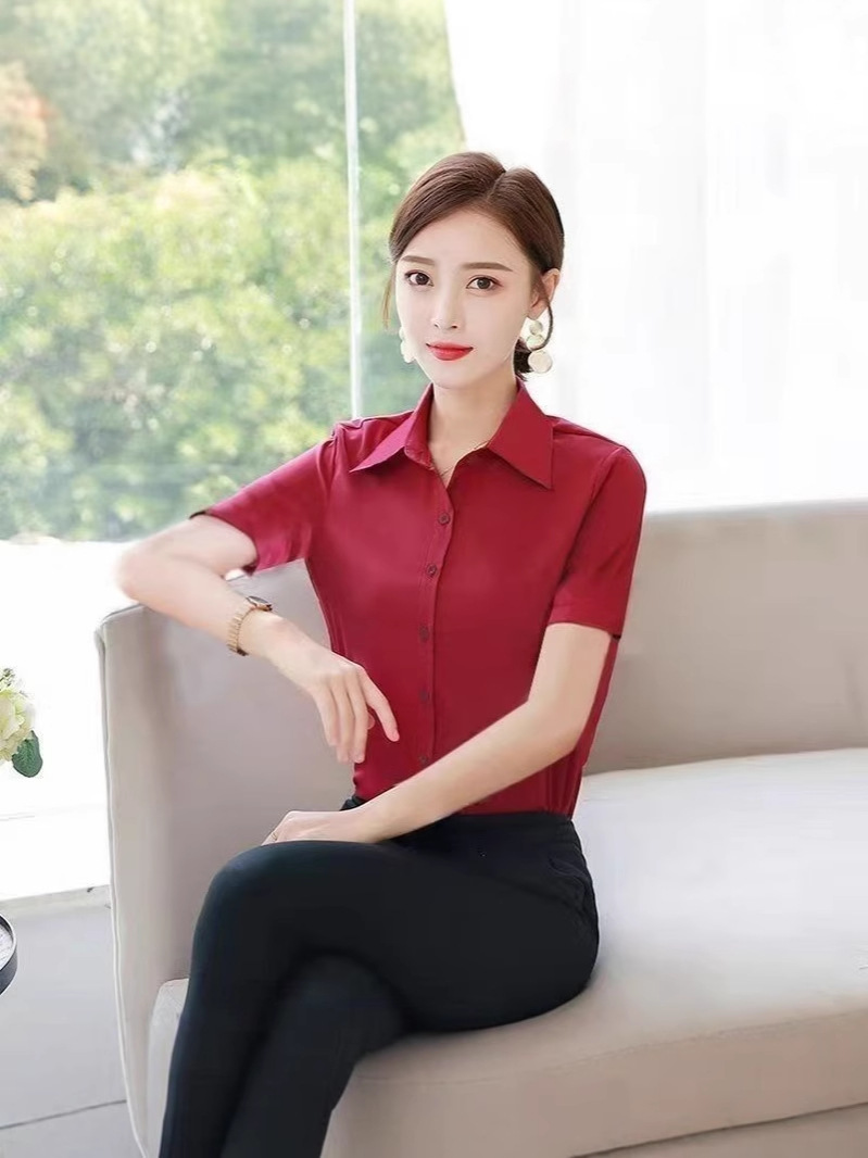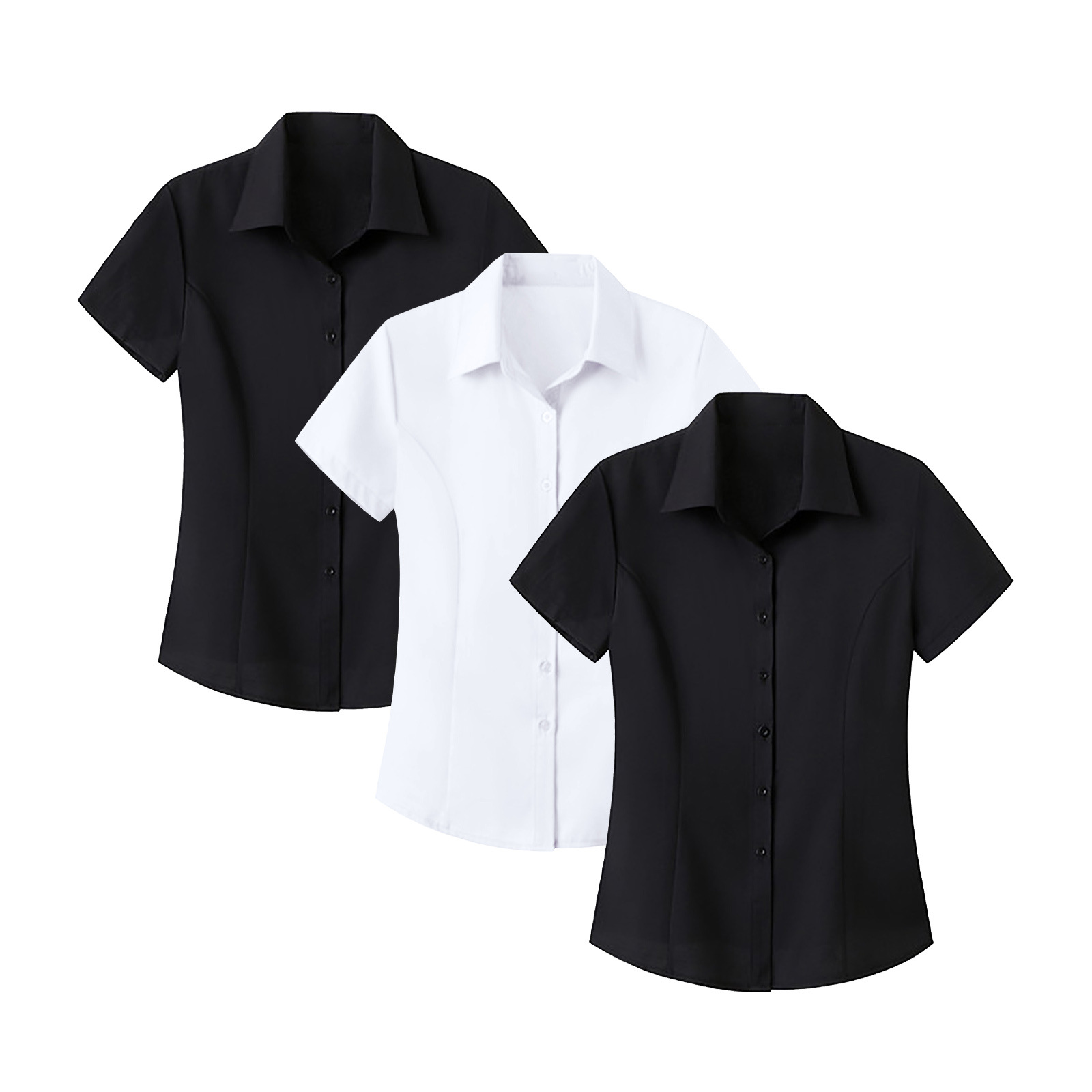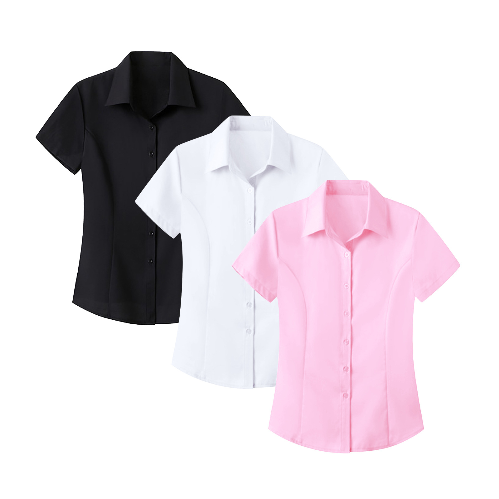 Главная страница > Новая высококачественная женская деловая рубашка с круглым вырезом, не мнущаяся, для профессиональных собеседований, готовая к носке, не требующая глажки, с коротким рукавом.