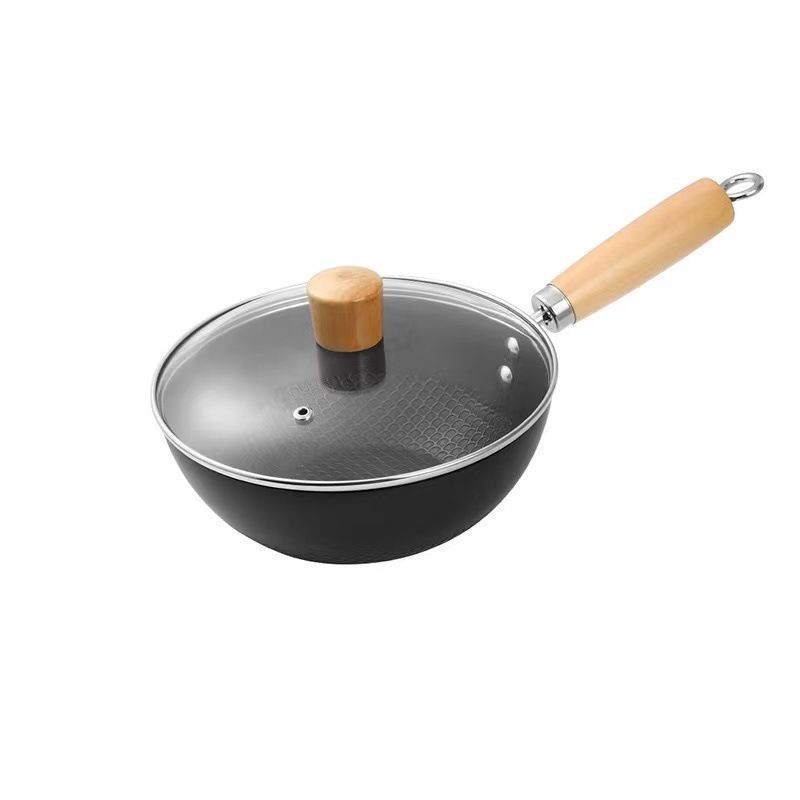 Маленький вок 20 см [стеклянная крышка] поставляется с деревянной лопаточкой.