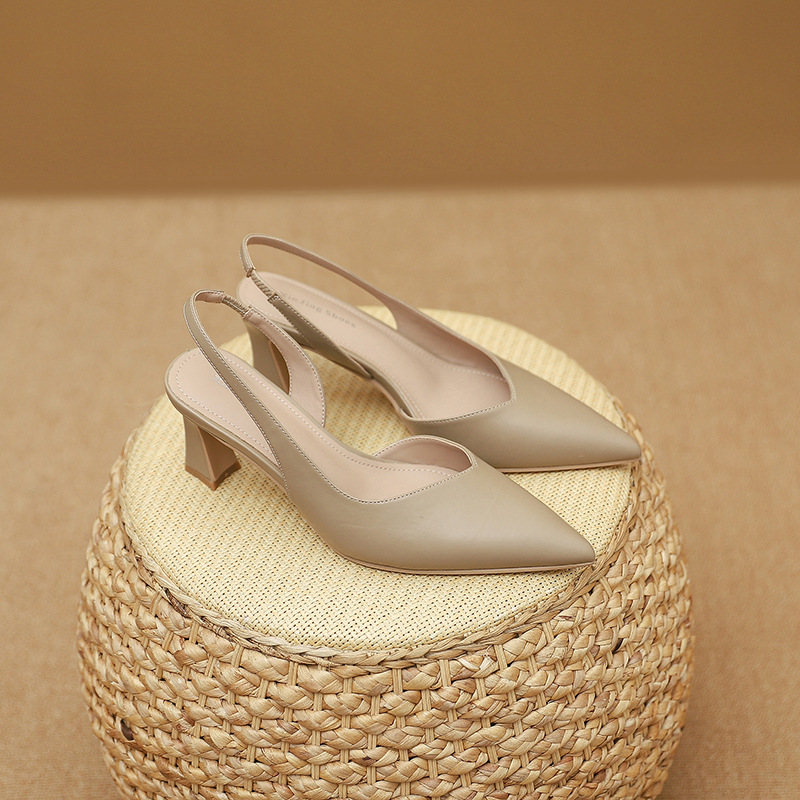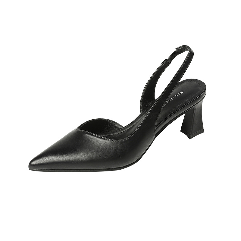 Главная страница > 97199-3 Маленькие Простые сандалии Baotou в стиле Шанель, женские новые туфли на толстом каблуке с пустой спиной и мелким ртом с острым носком