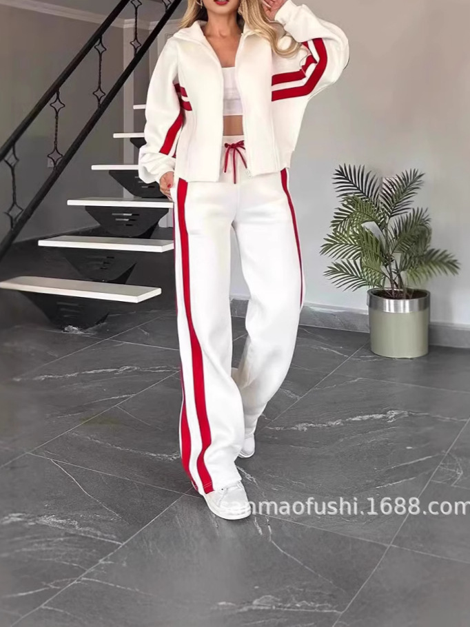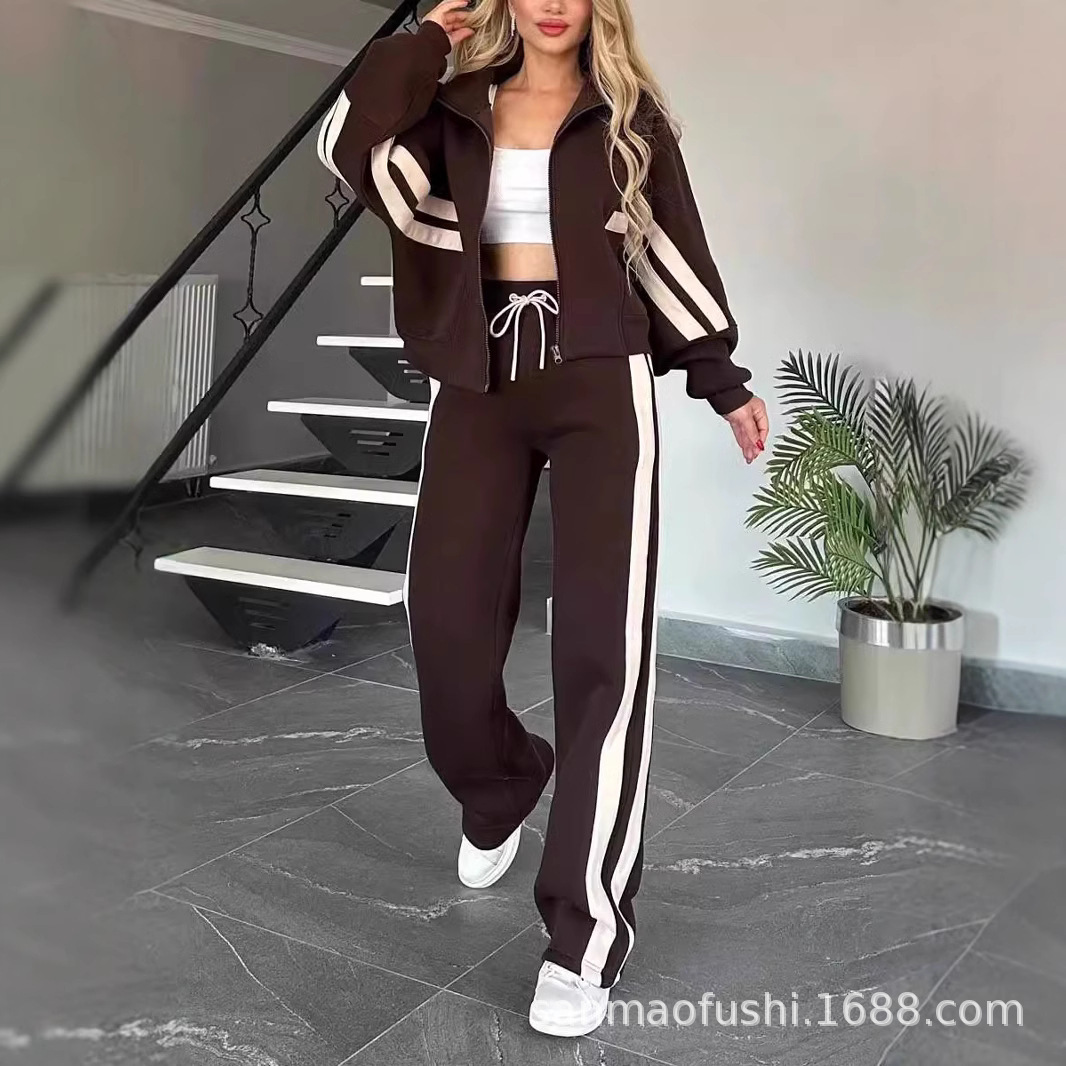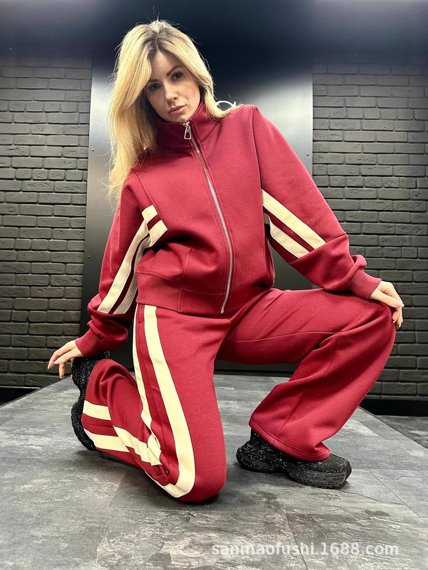 2024 Европейский и Американский трансграничный Амазонка Осень Внешняя торговля Y2K Полосатая куртка на молнии куртка повседневный спортивный костюм женский