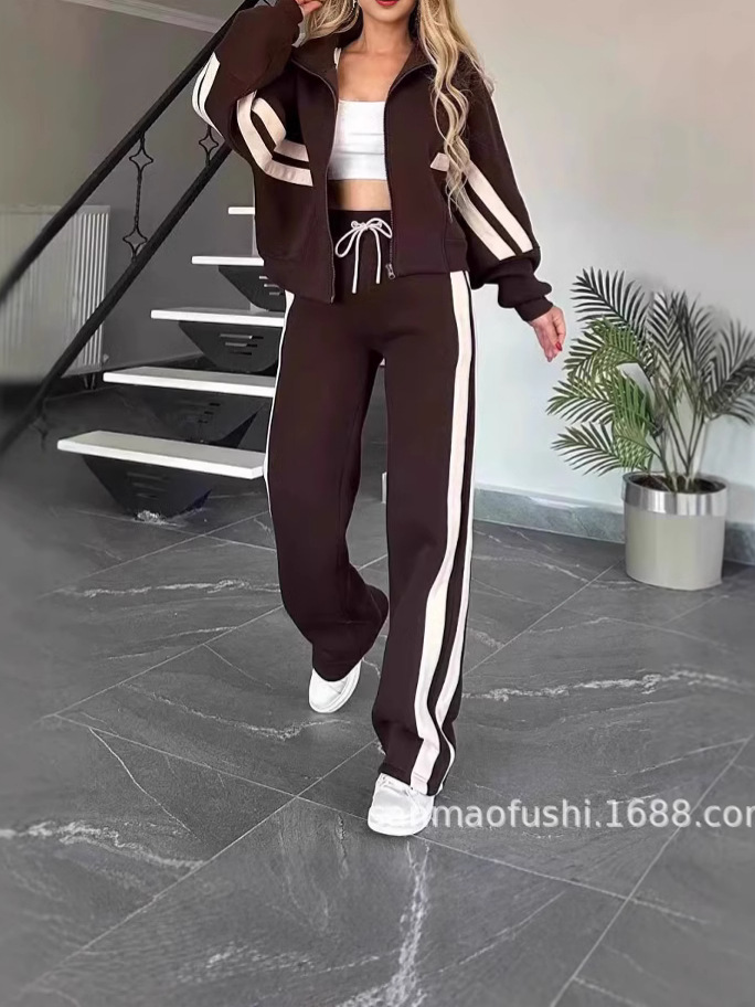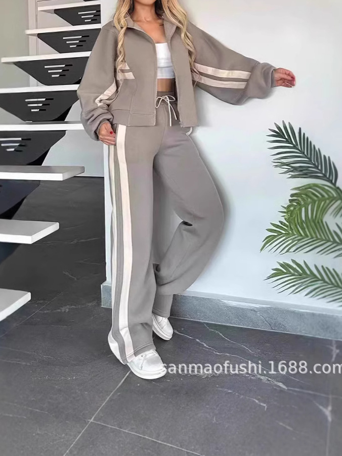 Главная страница > 2024 Европейский и Американский трансграничный Амазонка Осень Внешняя торговля Y2K Полосатая куртка на молнии куртка повседневный спортивный костюм женский