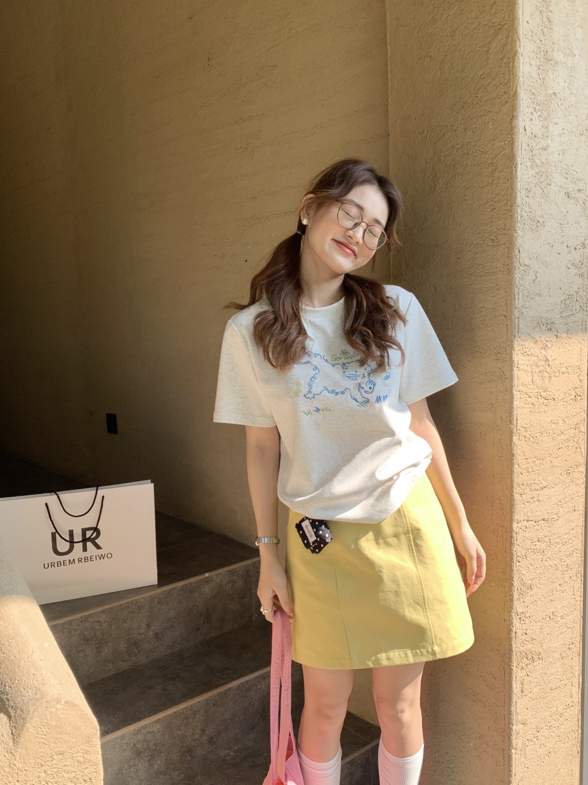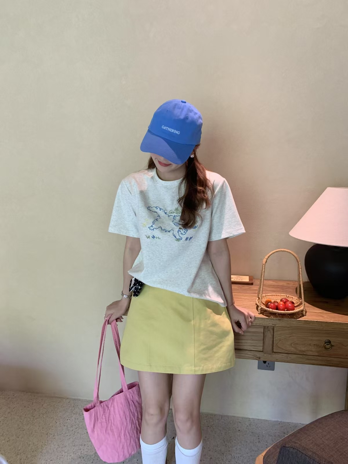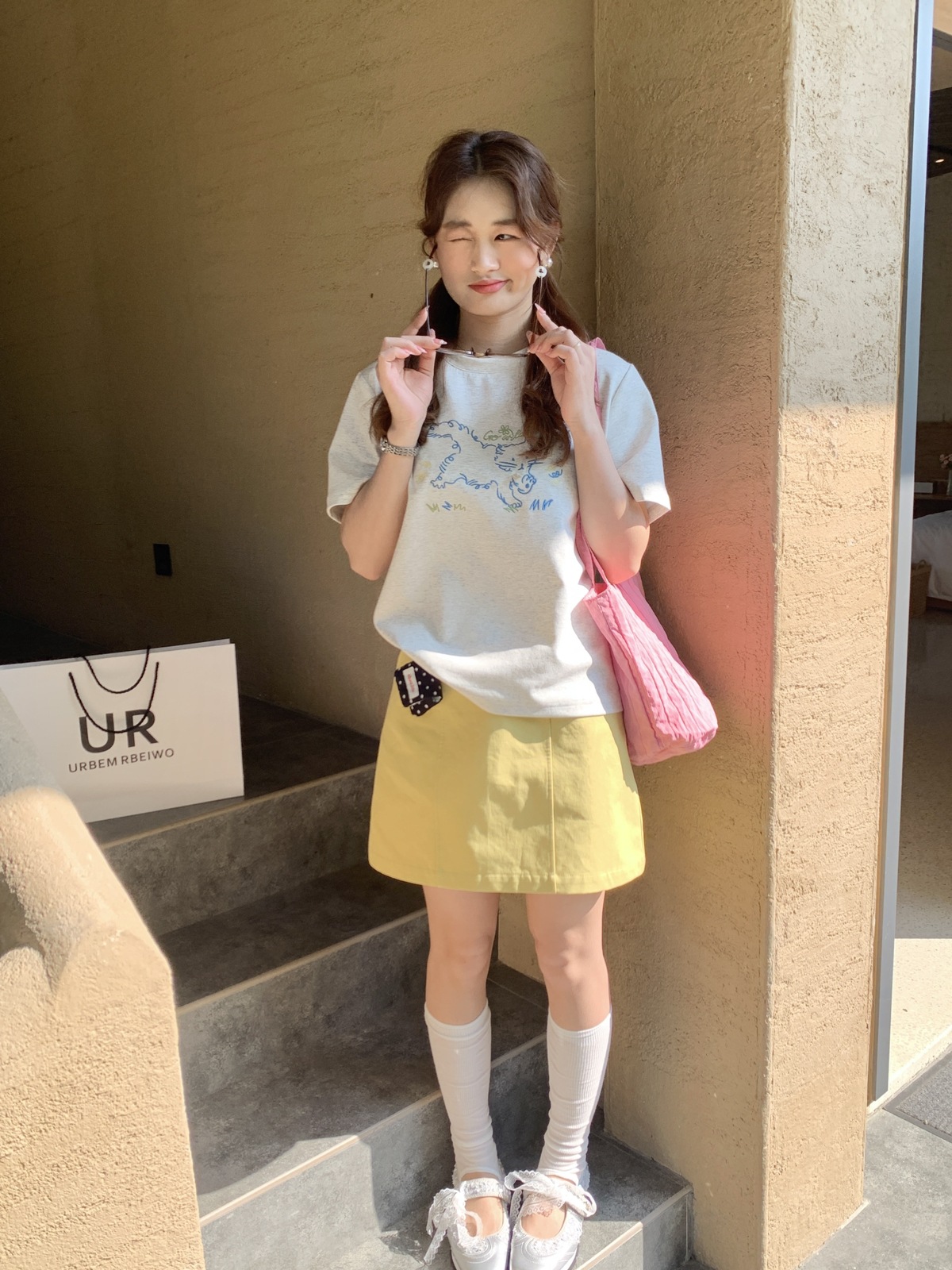 Главная страница > SUSAN 2025 корейский топ с вышивкой, новый пуловер с круглым вырезом и вышивкой, футболка на правое плечо с короткими рукавами для женщин, лето DL612