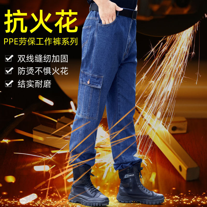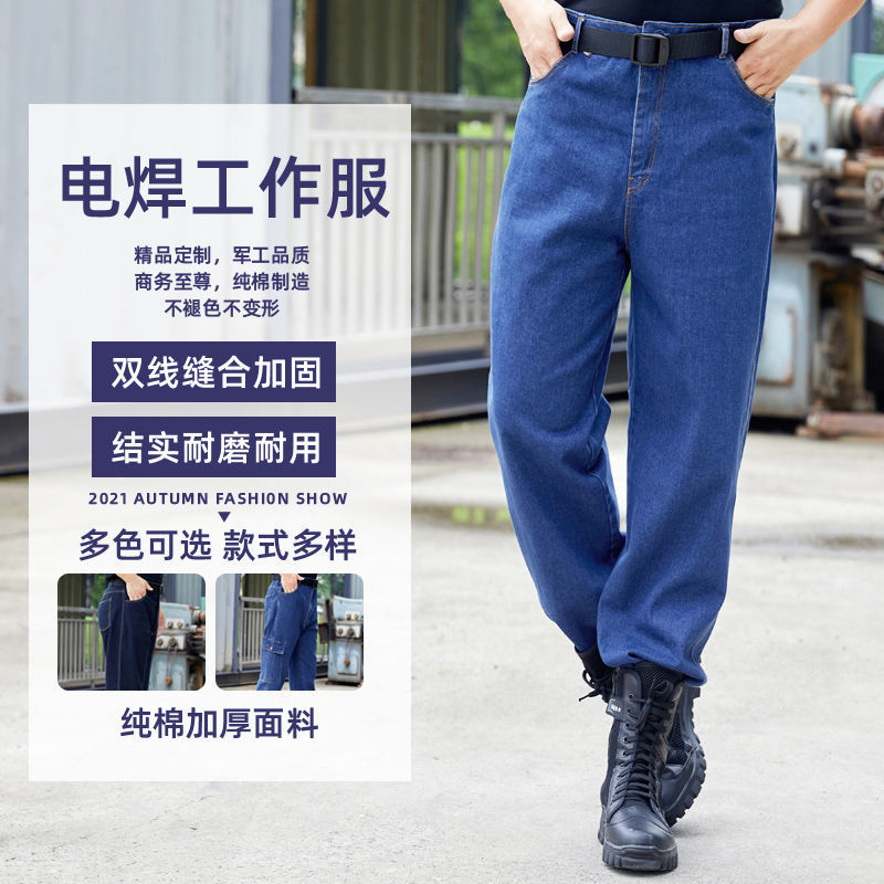Главная страница > Рабочие брюки Мужские хлопчатобумажные толстые износостойкие свободные сварочные противобугленые джинсы