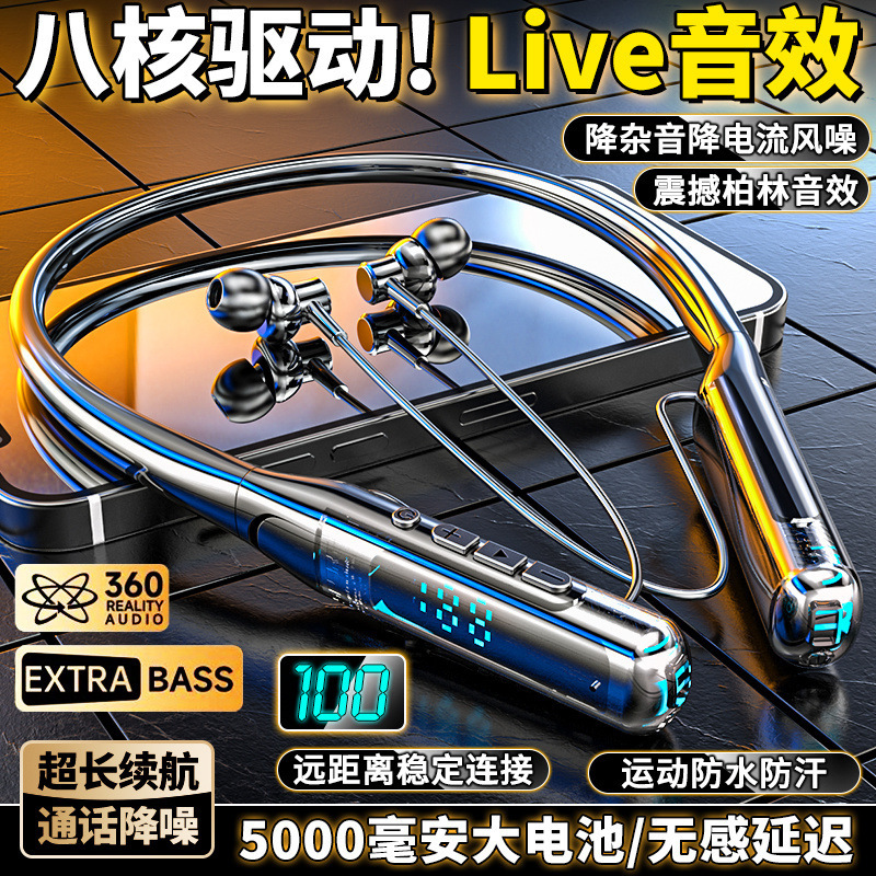 Главная страница > 2025 Новая Bluetooth-гарнитура с подвесным шейным креплением, сверхдлинное время работы, спортивная, супербасы, шумоподавление, Bluetooth-гарнитура с подвесным шейным креплением