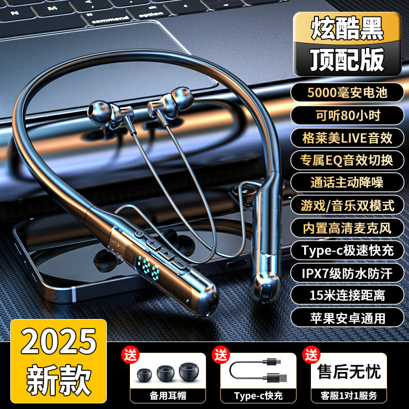 2025 Новая Bluetooth-гарнитура с подвесным шейным креплением, сверхдлинное время работы, спортивная, супербасы, шумоподавление, Bluetooth-гарнитура с подвесным шейным креплением