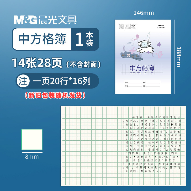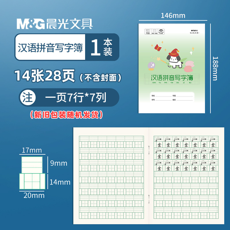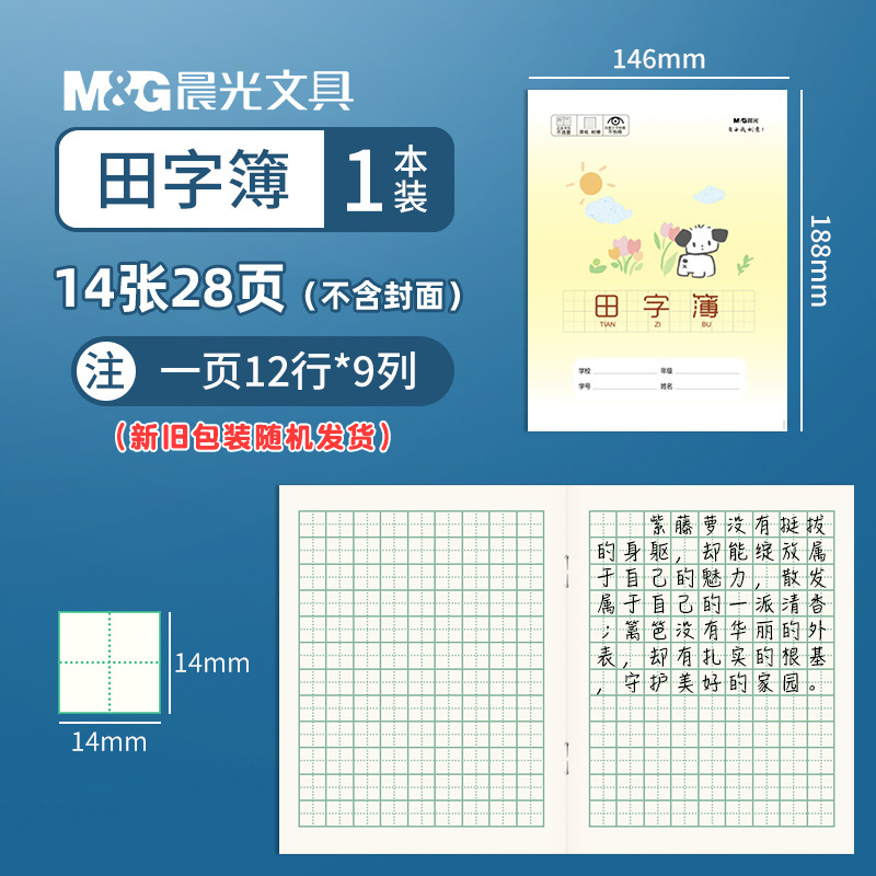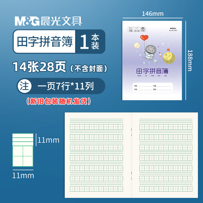 Чэнгуан мультфильм тетрадь пиньинь Тянь характер сетка одиночная линия начальной школы детский сад национальный стандарт унифицированная книга для письма
