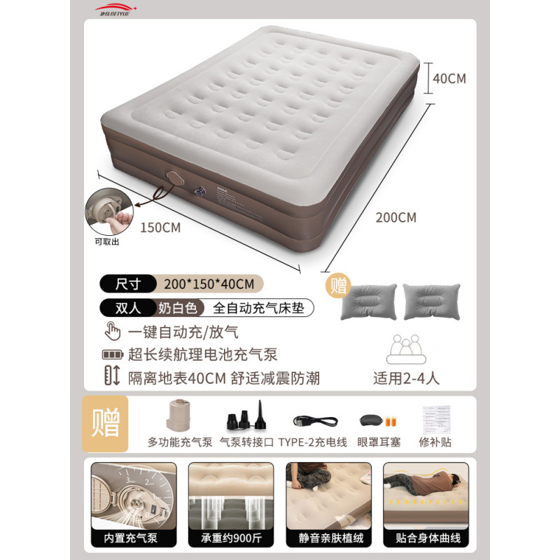 [Трехслойное увеличение высоты 40 см] Автоматическая надувная кровать с двойным встроенным насосом (поставляется с подушкой)