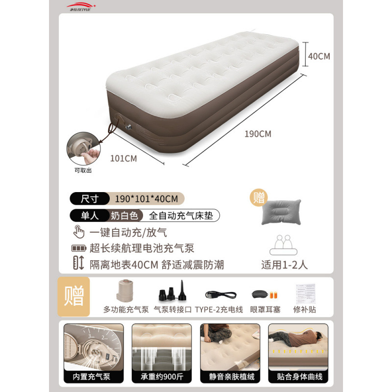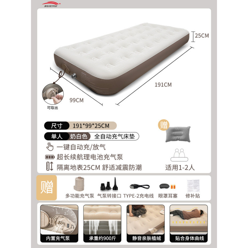 [Толщина 25 см] Односпальная автоматическая надувная кровать со встроенным насосом (подушка в комплекте)