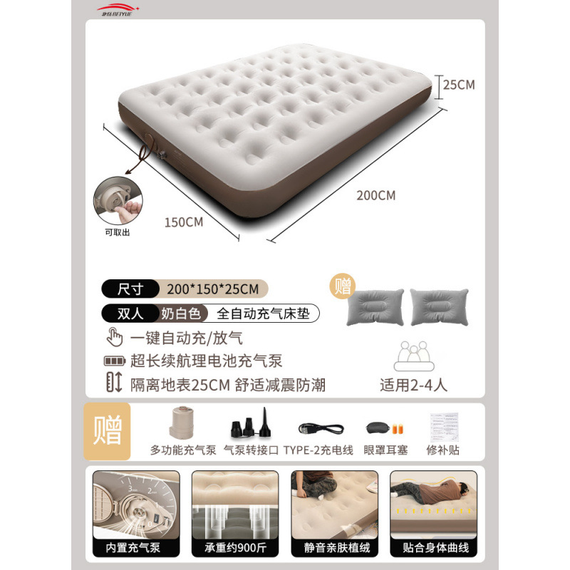[Толщина 25 см] Автоматическая надувная кровать с двойным встроенным насосом (поставляется с подушкой)