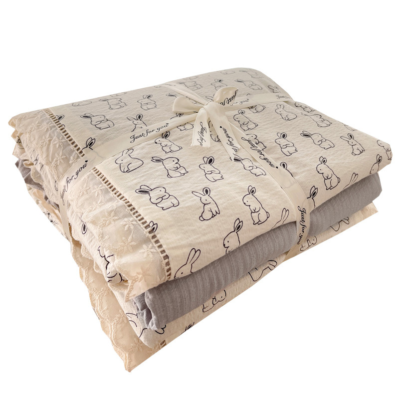 Новый комплект постельного белья из четырех предметов для новорожденных и младенцев, 2025 год, из чистого хлопка, двухслойная марля, простыня, пододеяльник, комплект из трех предметов