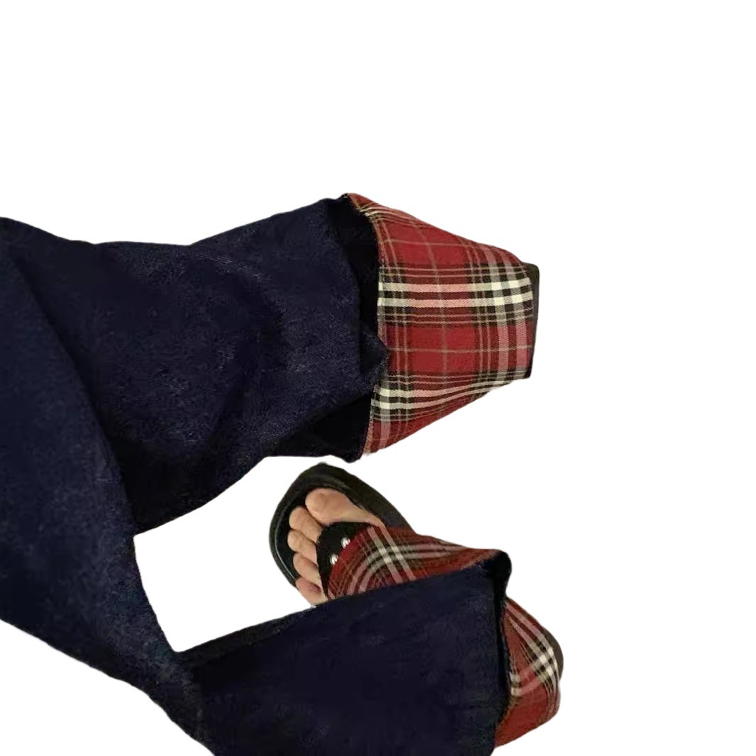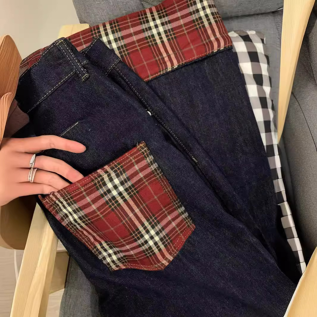 Главная страница > Американские ретро-сетчатые сшитые джинсы женские летние новые широкие ноги прямые большие размер свободные штаны