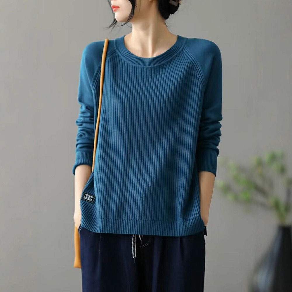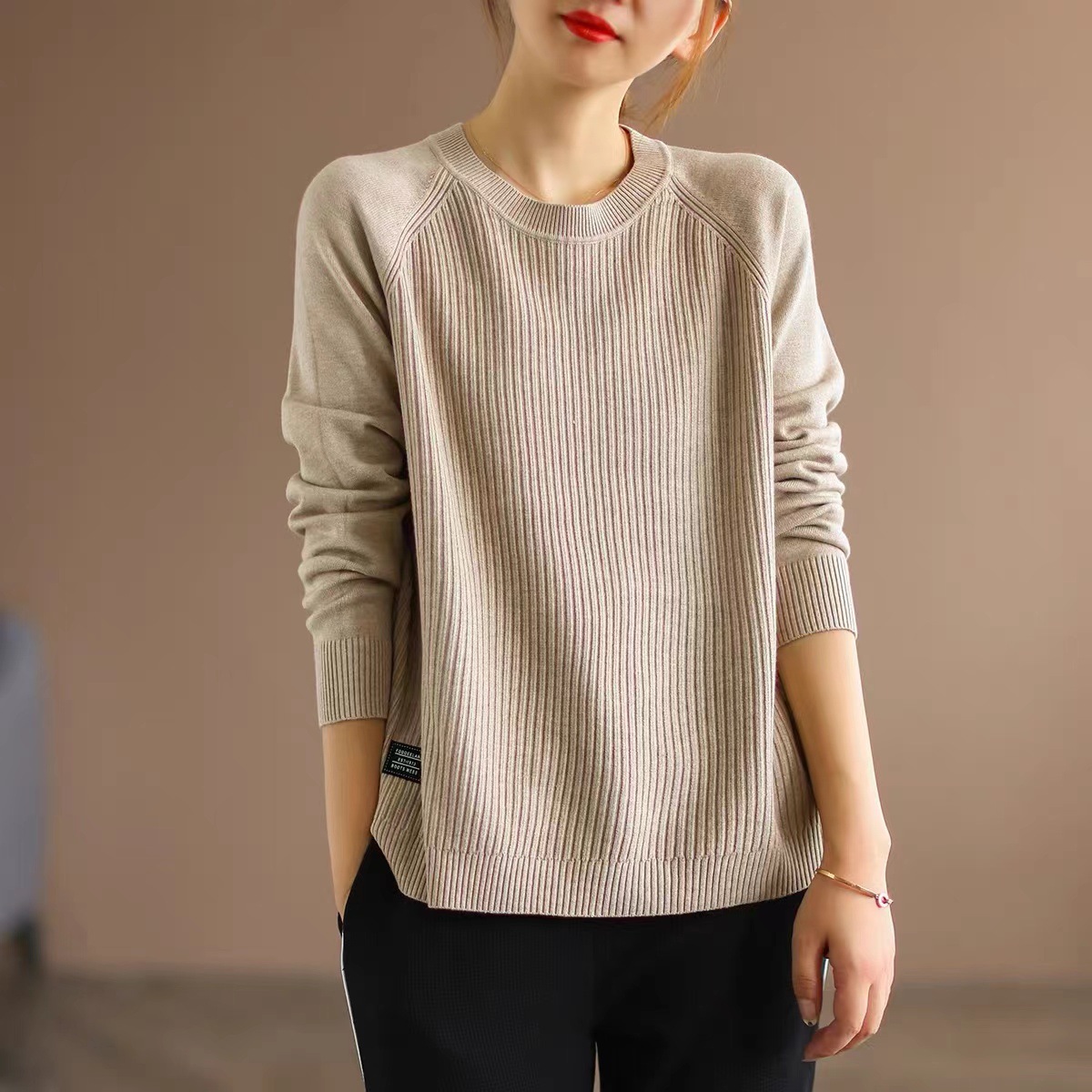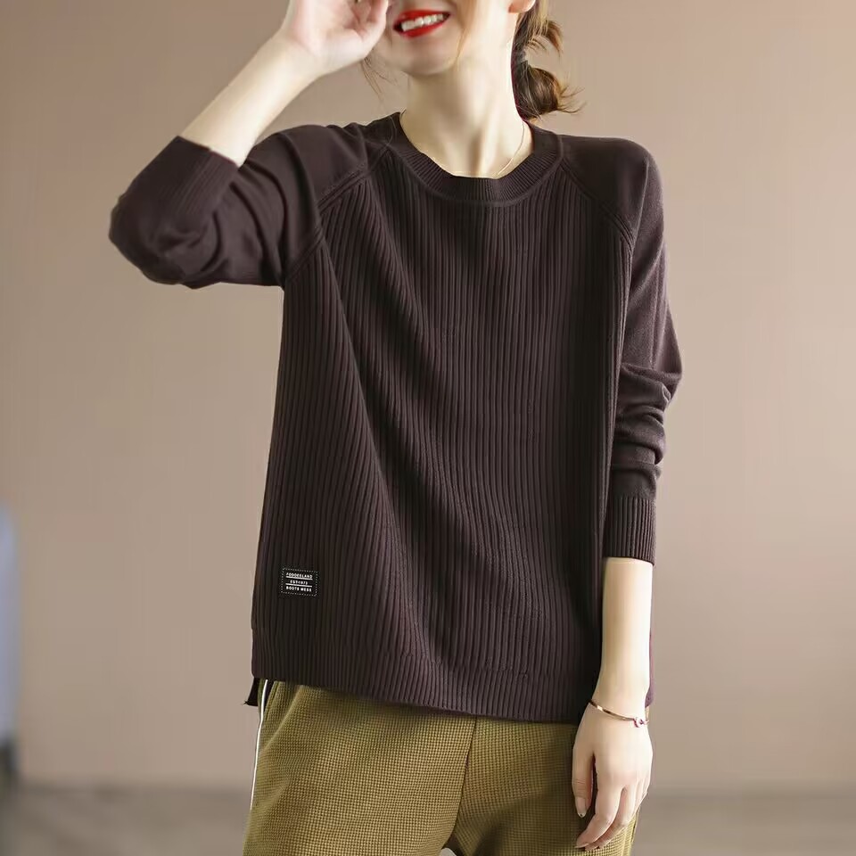 Главная страница > Винтажный вязаный свитер в стиле ретро для женщин, новый осенне-зимний свободный свитер с длинными рукавами в рубчик и круглым вырезом, базовая рубашка больших размеров.