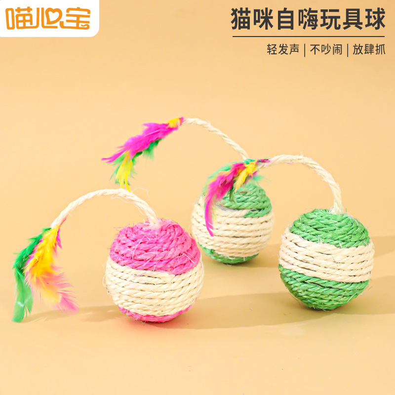 Сизалевый Волан мяч Мяу Сердце Сокровище круглые кошачьи коренные зубы шлифовальные когти красочные перья звенящие бусины игрушки для домашних кошек оптом