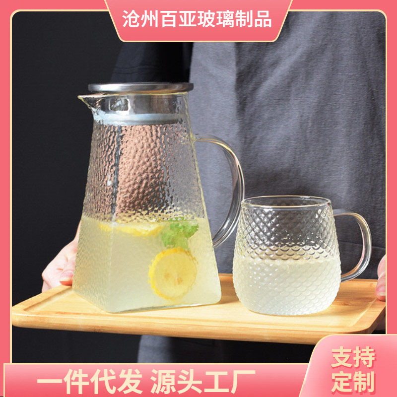 Главная страница > Оптовая Продажа с фабрики бутылка холодной воды стеклянный квадратный молоток узор большой емкости чашка холодной воды бытовая термостойкая бутылка с водой костюм