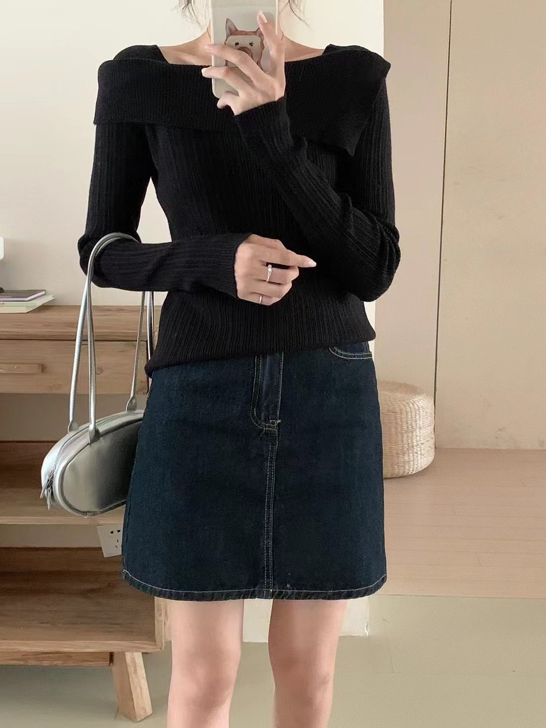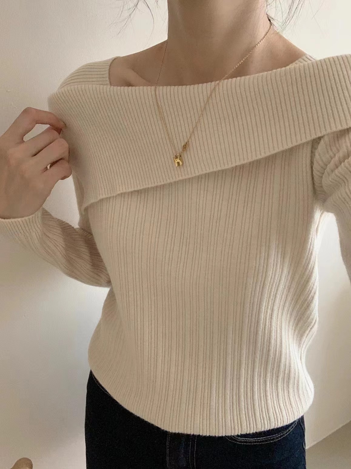 Главная страница > Корейский нежный стиль с буквами на плечах свитер топ женский 2024 осень и зима дизайн тонкий свитер прилив 273