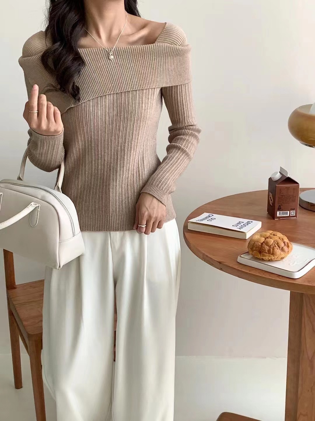 Корейский нежный стиль с буквами на плечах свитер топ женский 2024 осень и зима дизайн тонкий свитер прилив 273