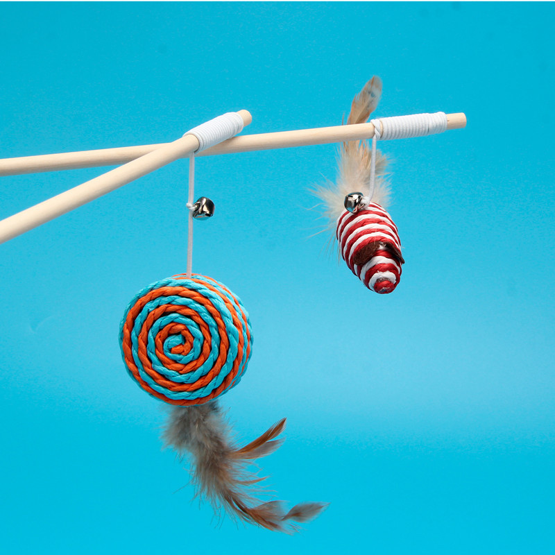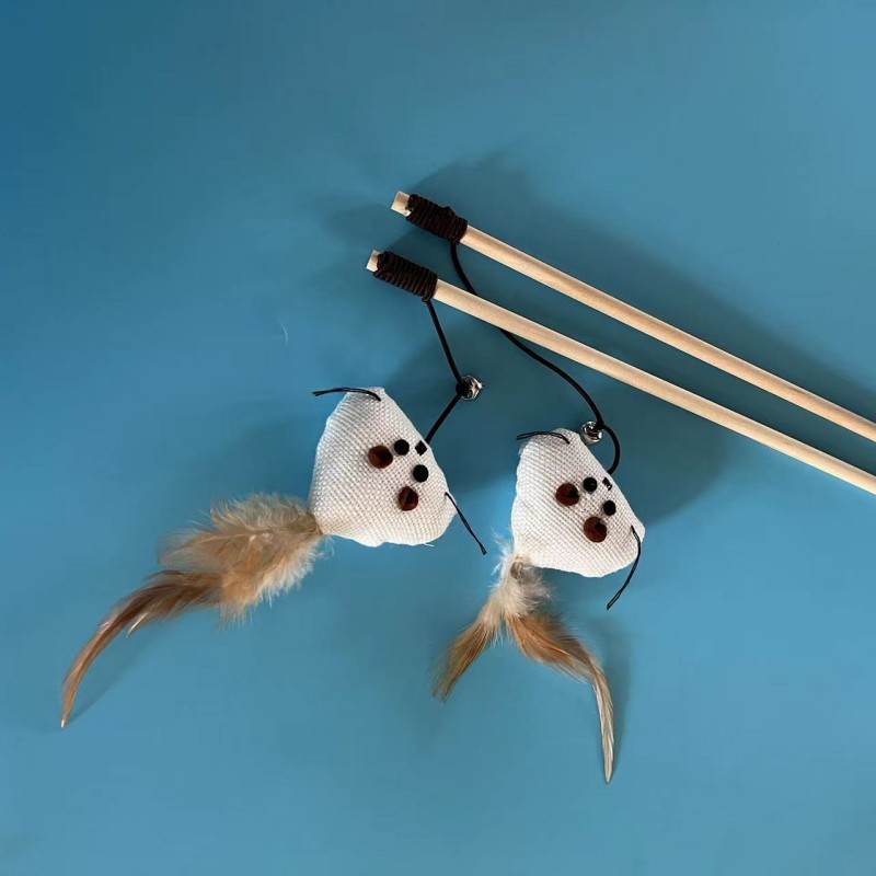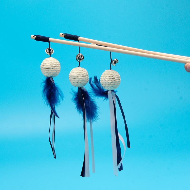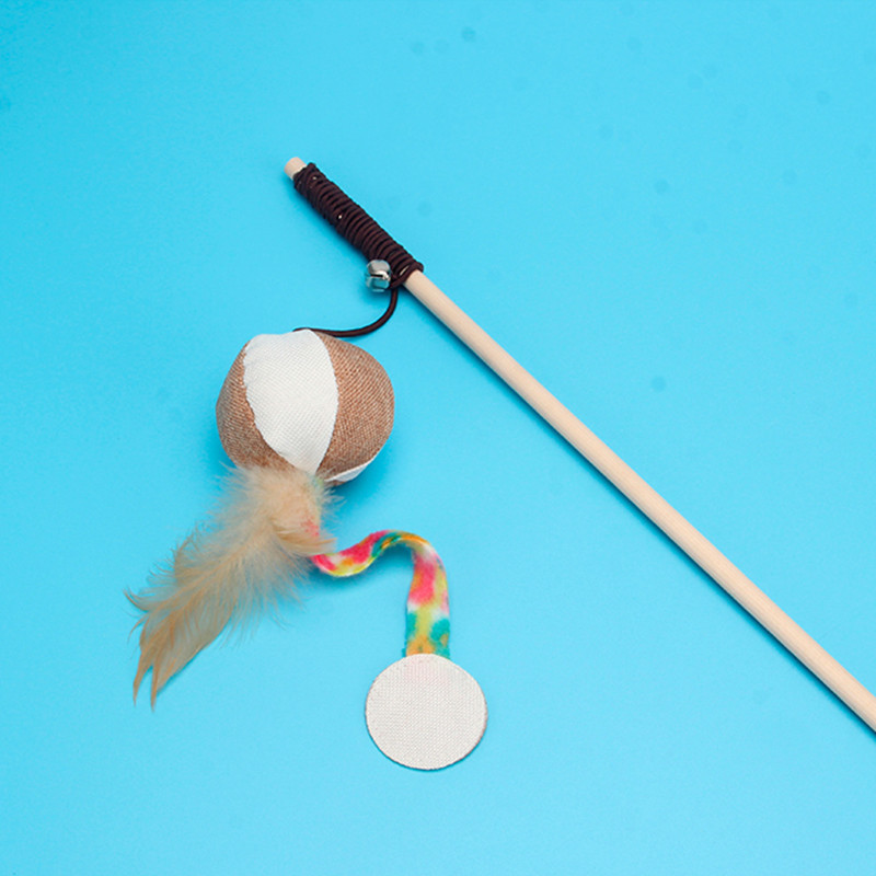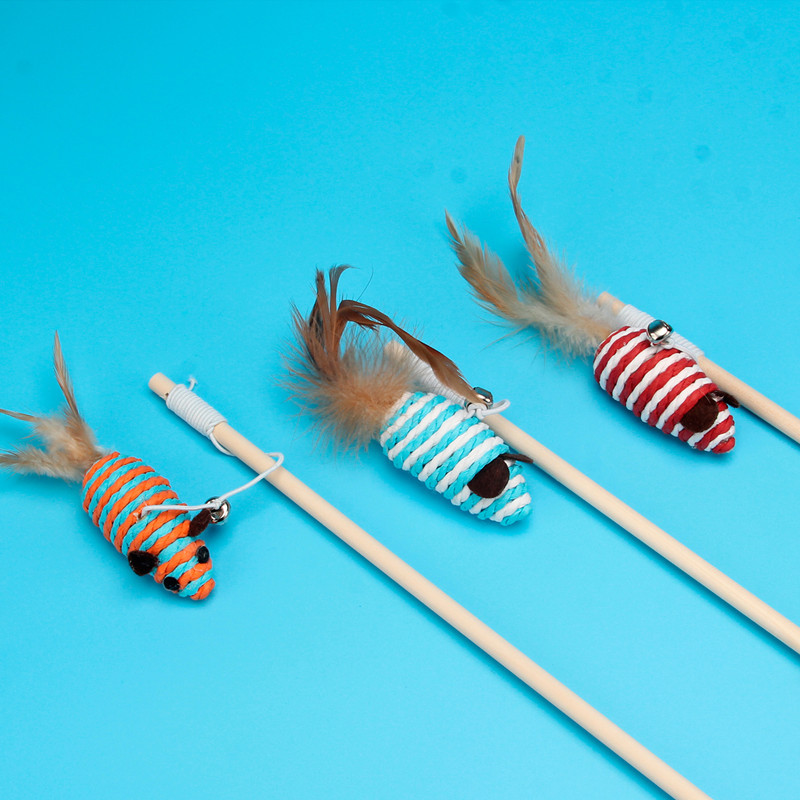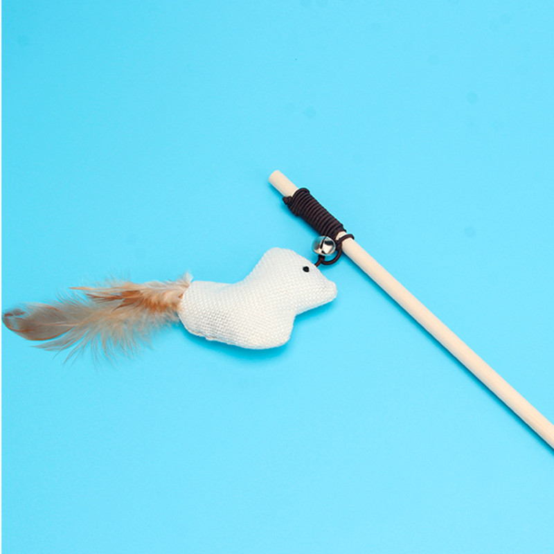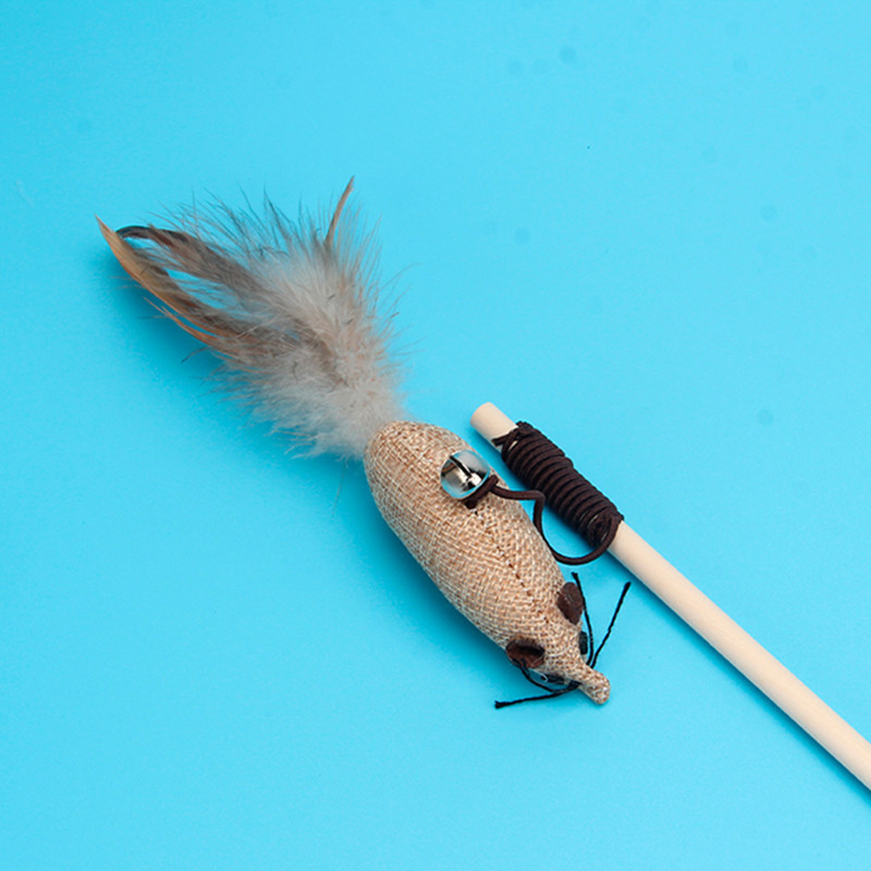Товары для домашних животных Интерактивная Self-Hi Деревянная кошка Tease Pole Кошачье перо Колокольчик Игрушка для мыши Палка