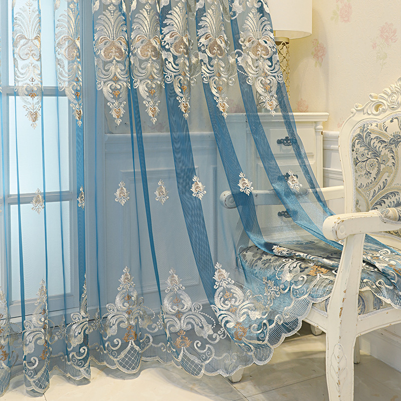 Главная страница > Новые европейские вышитые шторы в американском стиле из плотной прозрачной ткани синего и бежевого цветов для гостиной и балкона, готовые изделия оптом для трансграничной торговли.