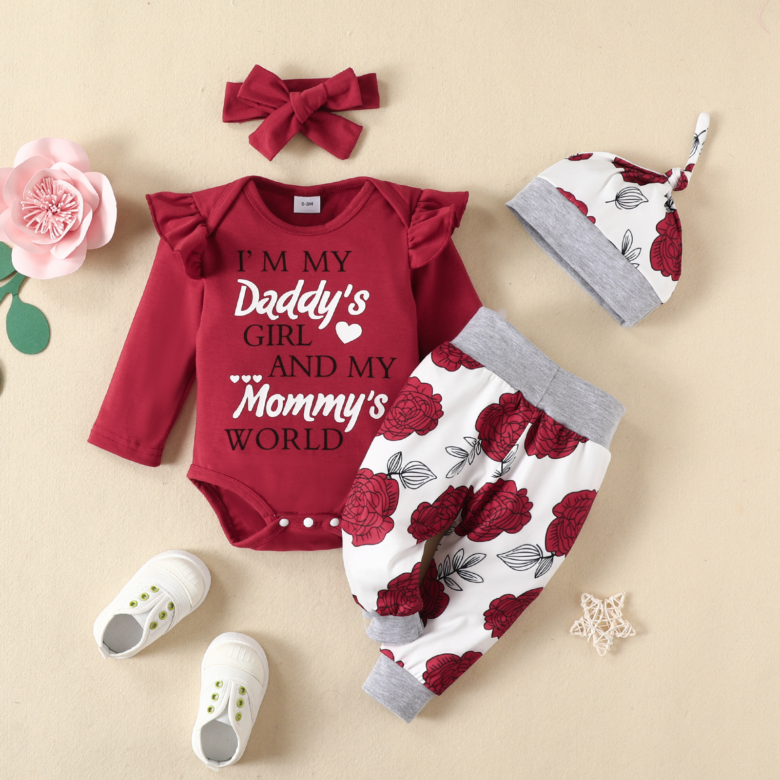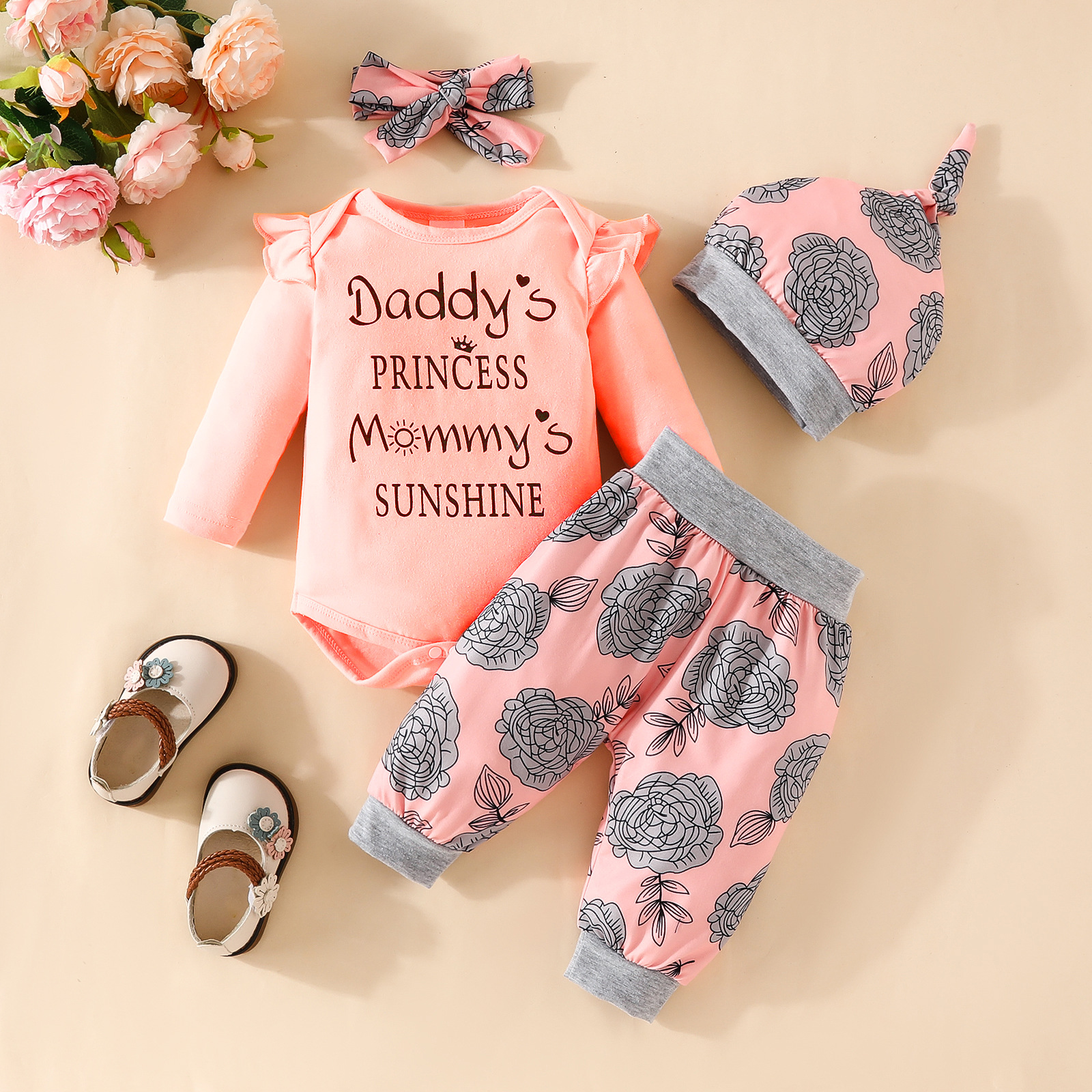 Главная страница > Европейская и американская детская одежда, осенний комплект из четырех предметов для маленьких девочек с длинными рукавами, детские брюки с длинными рукавами и буквами Hassel Flower, шляпа, прилив