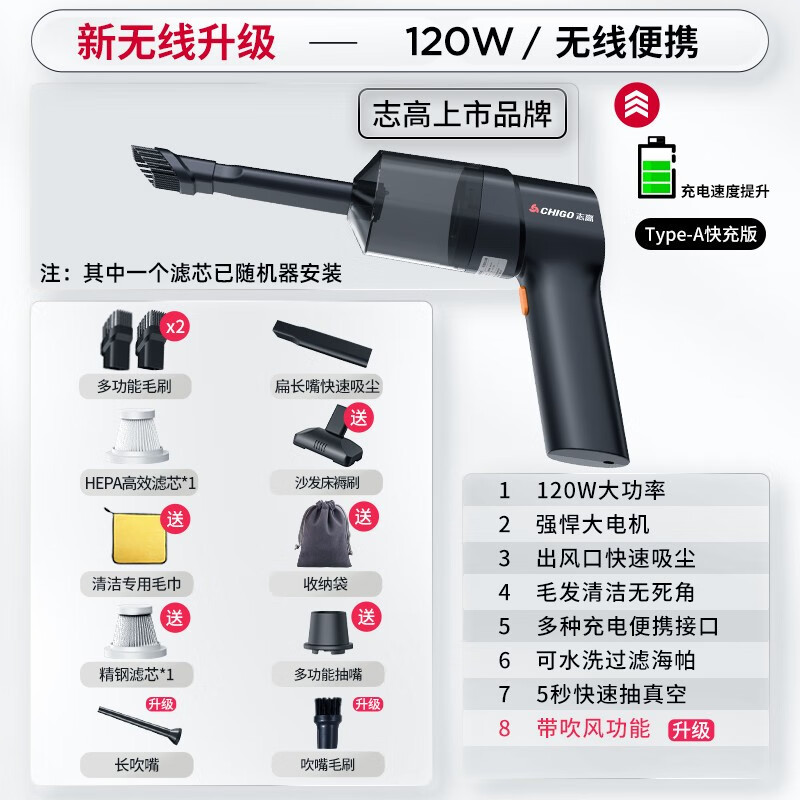 Главная страница > Автомобильный пылесос Zhigao, портативный беспроводной большой всасывающий пылесос, выдувание, двухцелевая Автомобильная зарядная машина для очистки
