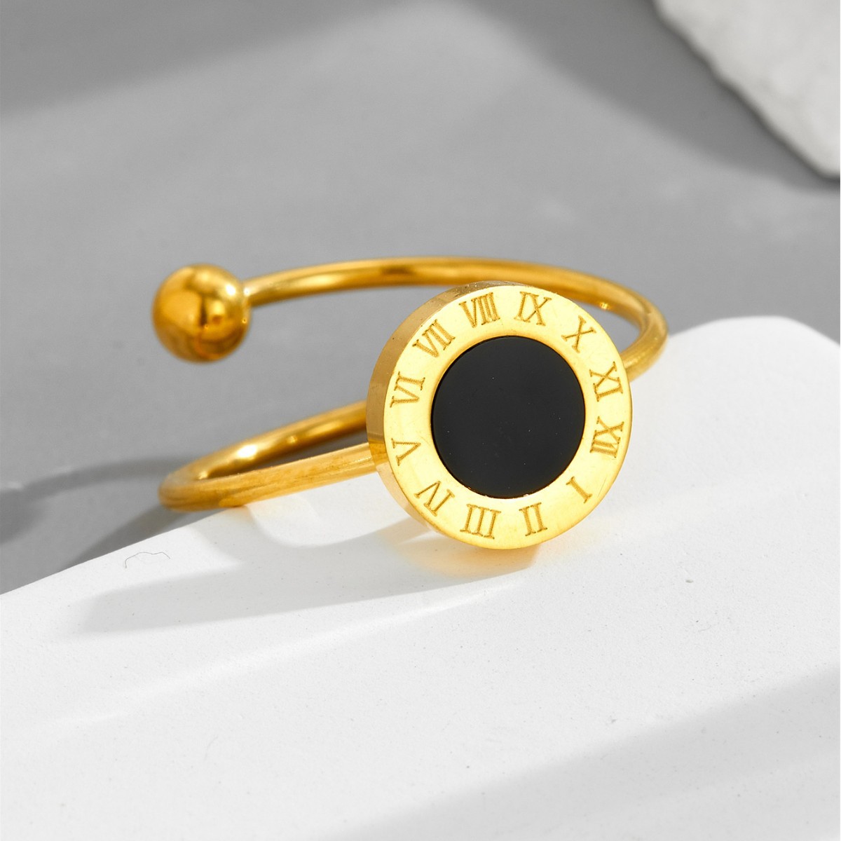 Главная страница > Регулируемое открытие нового французского римского черного ромашка не выцветает кольцо из титановой стали