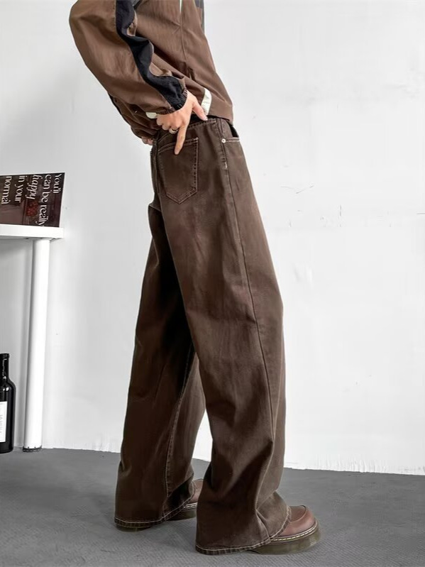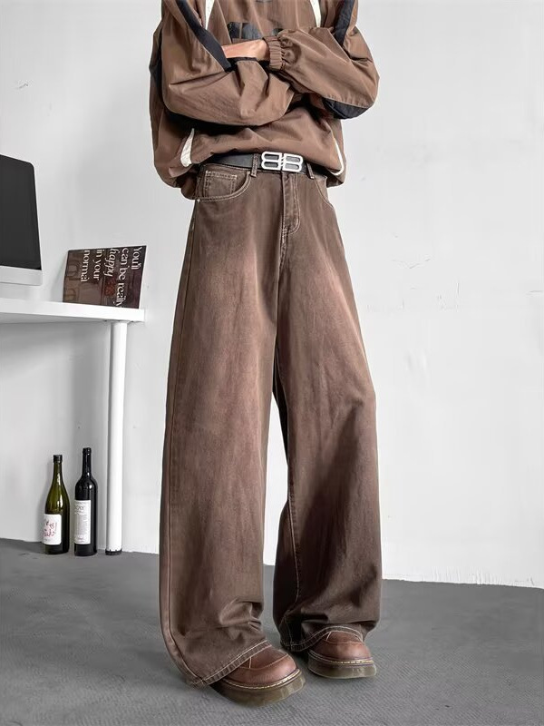 Главная страница > Mailard Джинсы Мужские Весна и Осень 2025 Американский Ретро Премиум Чувство Повседневное Свободные Коричневые Широкие Брюки