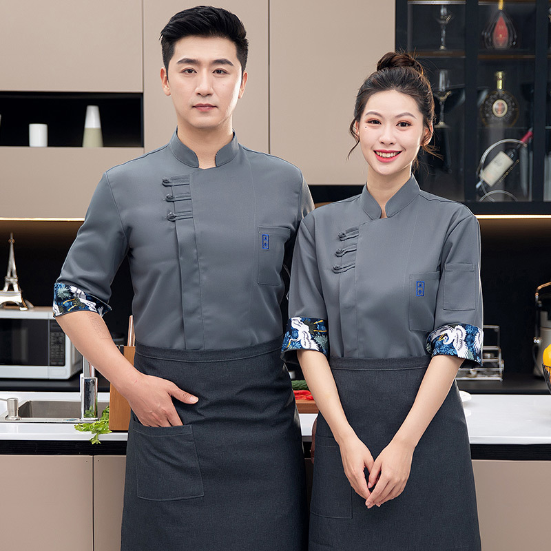Китайский стиль, рабочая одежда для шеф-повара с рукавами три четверти, Мужская гостиница, китайский ресторан, кухня, лето, Осень, Зима, рабочая одежда для шеф-повара