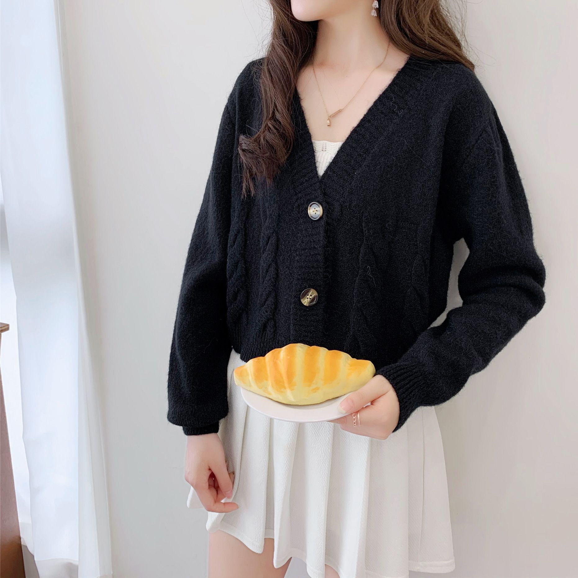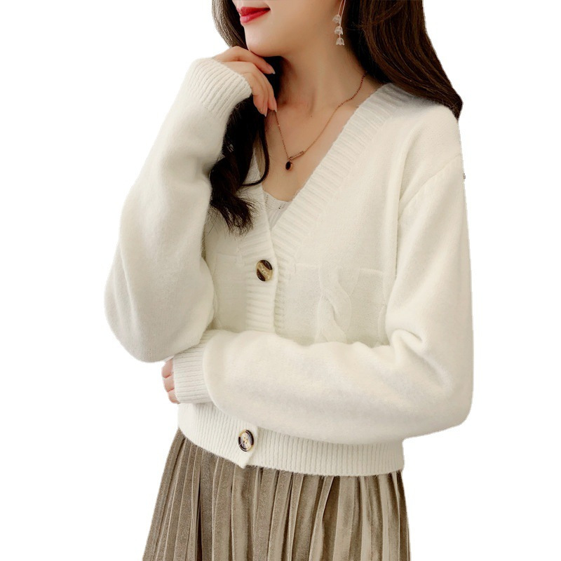 Главная страница > Короткий тонкий однотонный свитер с высокой талией, женский весенний новый однобортный вязаный кардиган, маленькая верхняя одежда