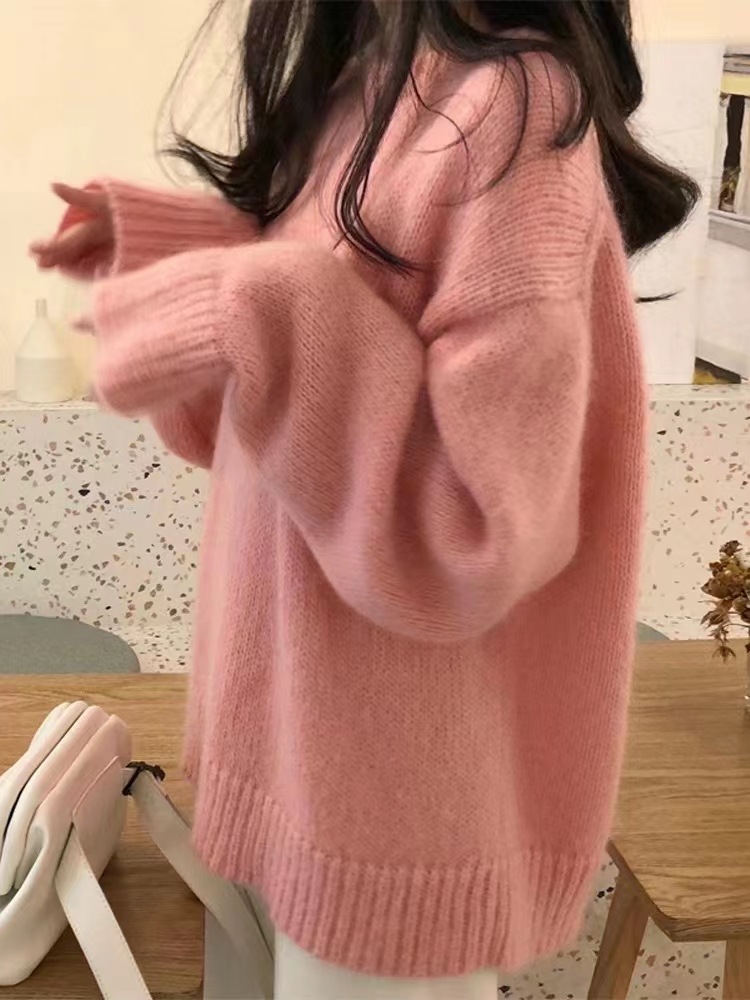 Главная страница > Однотонный мягкий восковой пуловер в ленивом стиле, свитер, женский осенне-зимний новый свободный Универсальный свитер с круглым вырезом на улице 2023 года