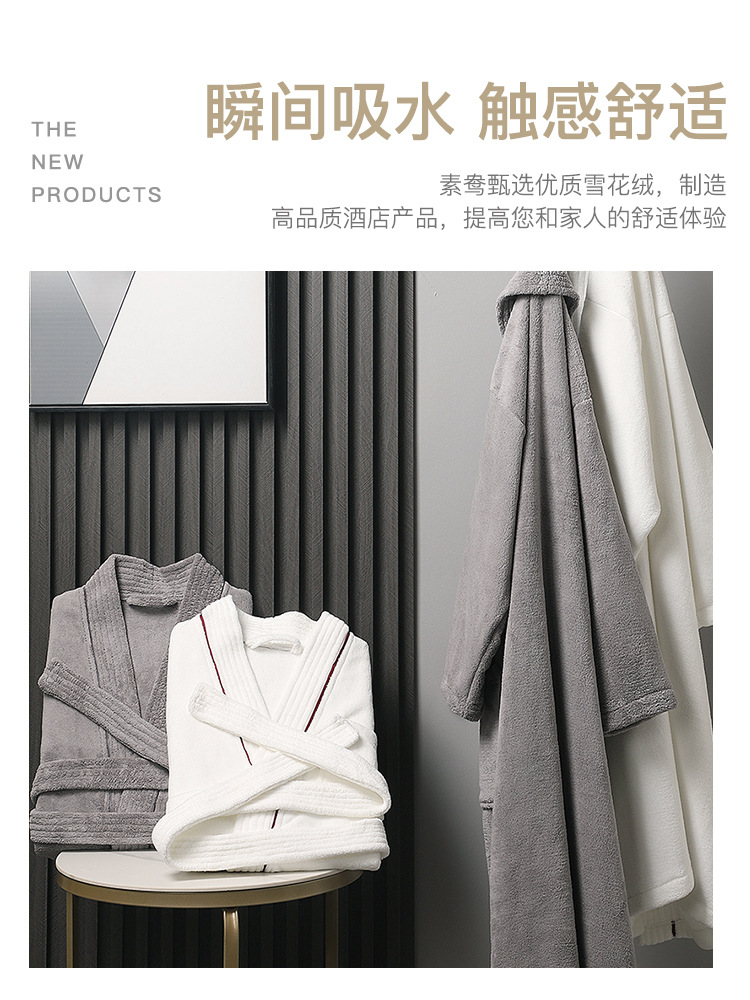 - [Антибактериальный класс ААА] Бархатный халат «Снежинка» — высококачественный серый, бесплатное одно и то же полотенце.