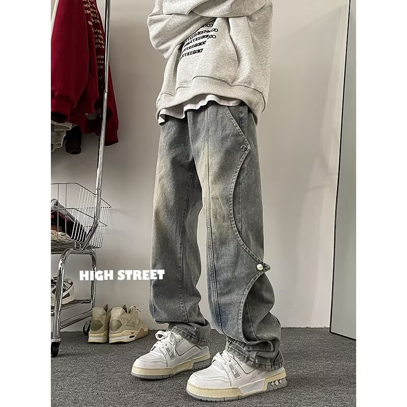 Рабочие джинсы мужские весенние американские высокие улицы vibe чувство дизайна нишевые красивые свободные прямые повседневные длинные брюки