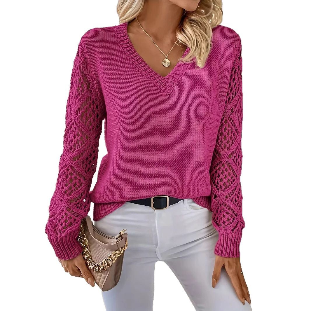 Главная страница > Весенние и осенние европейские и американские вязаные свитера Amazon AliExpress 2025, трансграничный пуловер с длинными рукавами и v-образным вырезом, полый однотонный свитер для женщин