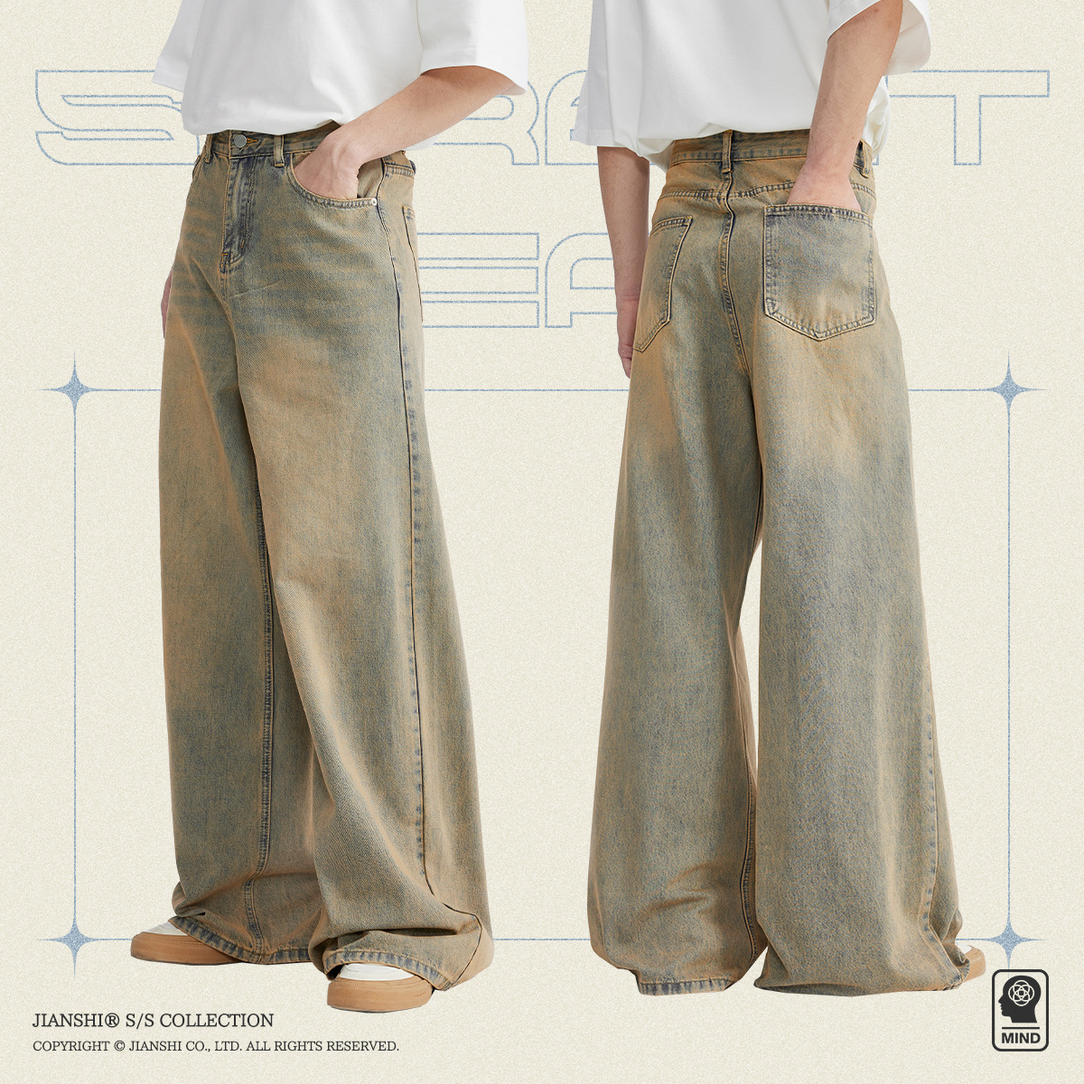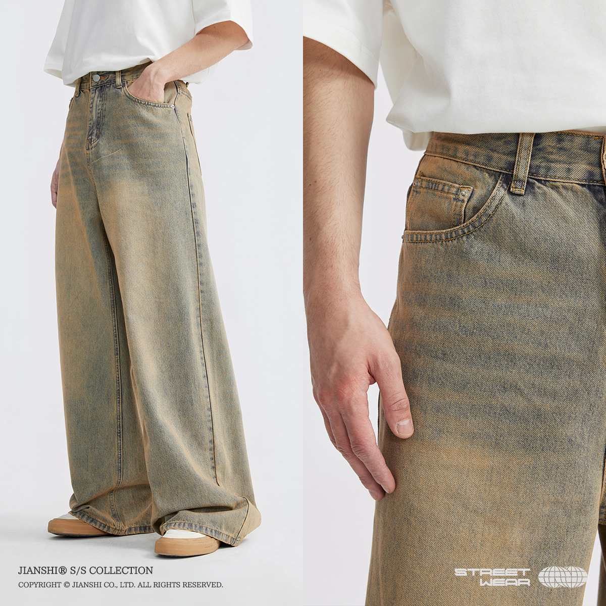 Главная страница > Insight Denim | Грязные старые джинсы с широкими штанинами, мужские новые модные брендовые уличные свободные большие прямые брюки для пар