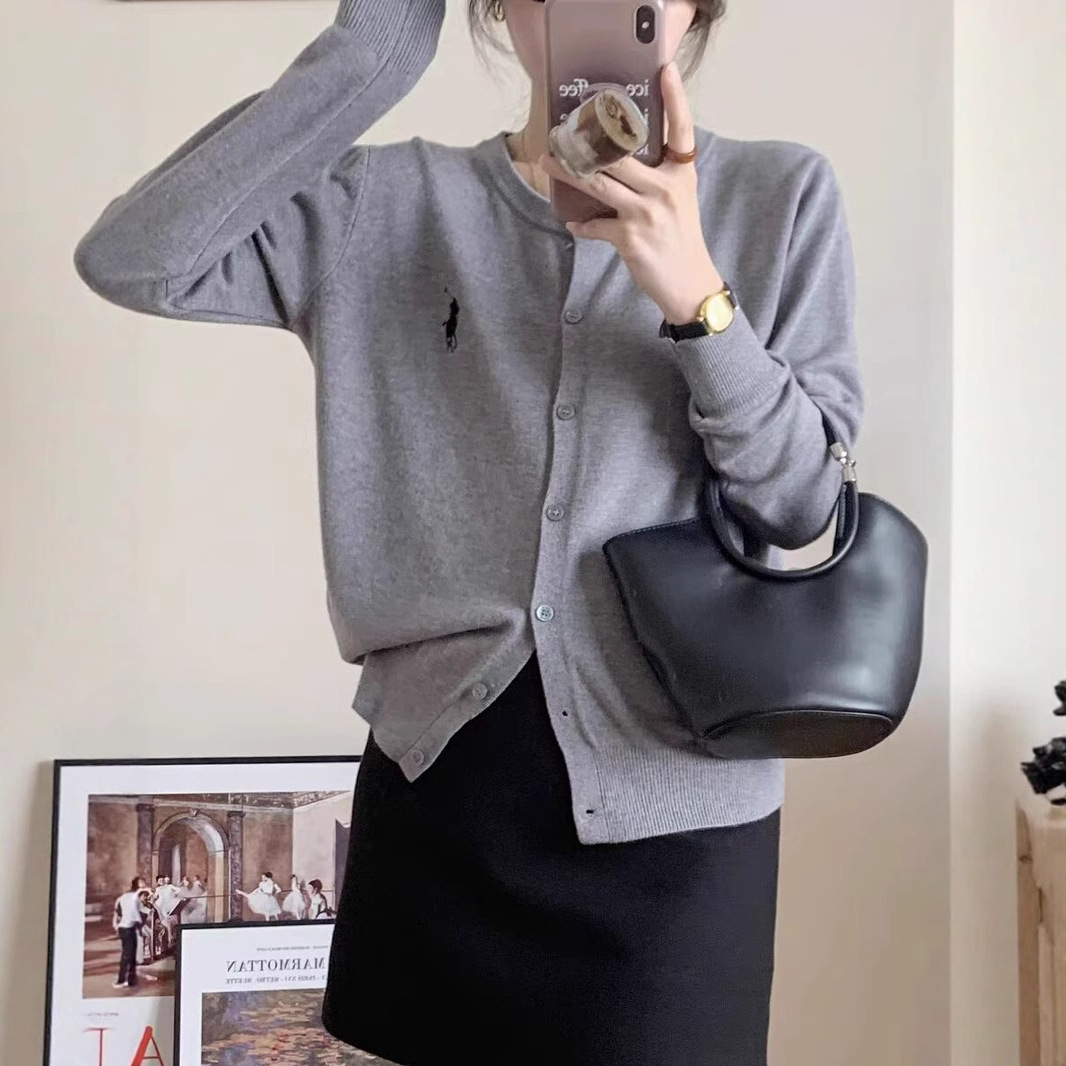 Весна, лето и осень 2025 года, новый однотонный шерстяной кардиган, женский свободный короткий тонкий свитер с вышивкой и круглым вырезом, вязаная куртка